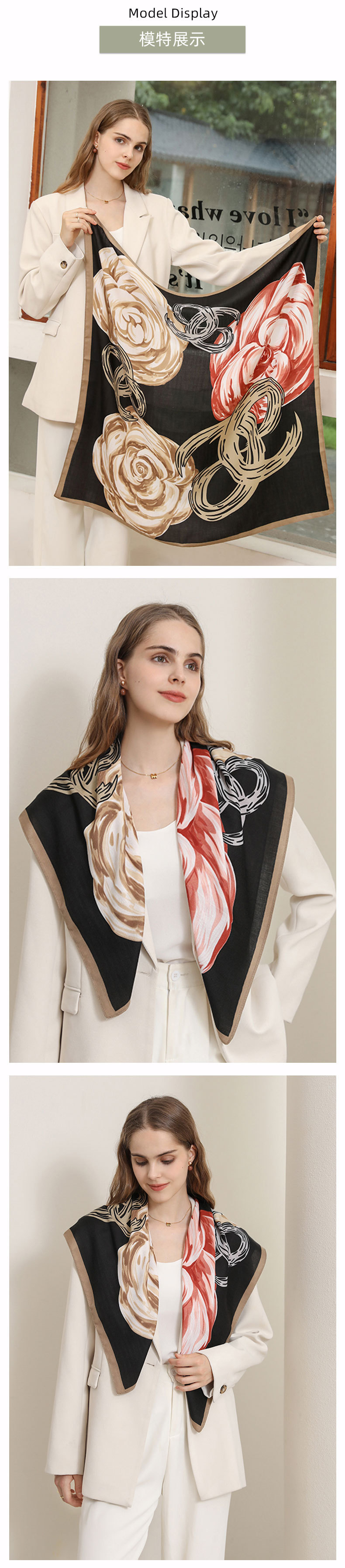 프랑스 복고풍 우아한 꽃무늬 여성용 90 정사각형 스카프, 고급 기념품, 패셔너블한 헤링본 패턴 정사각형 스카프스토어 가기