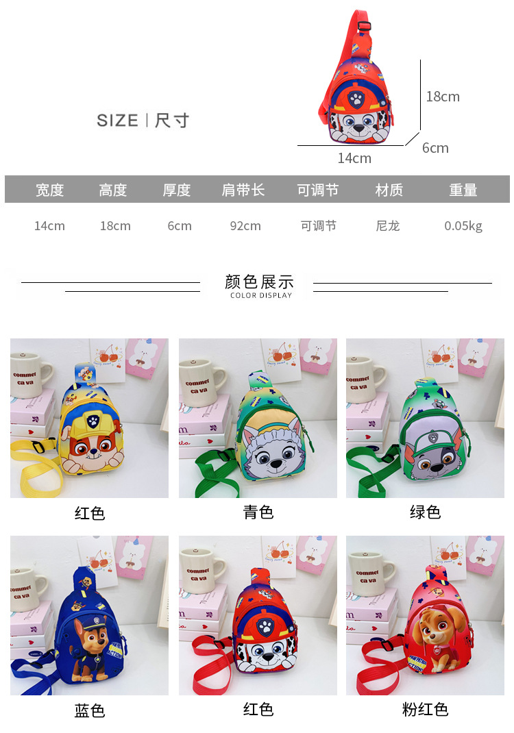 국경 간 새로운 귀여운 만화 강아지 어린이 가방 캐주얼 올 매치 소년과 소녀 가슴 가방 스타일 경량 변경 배낭스토어 가기