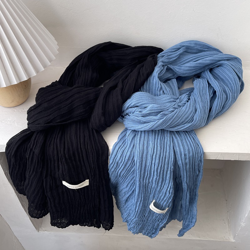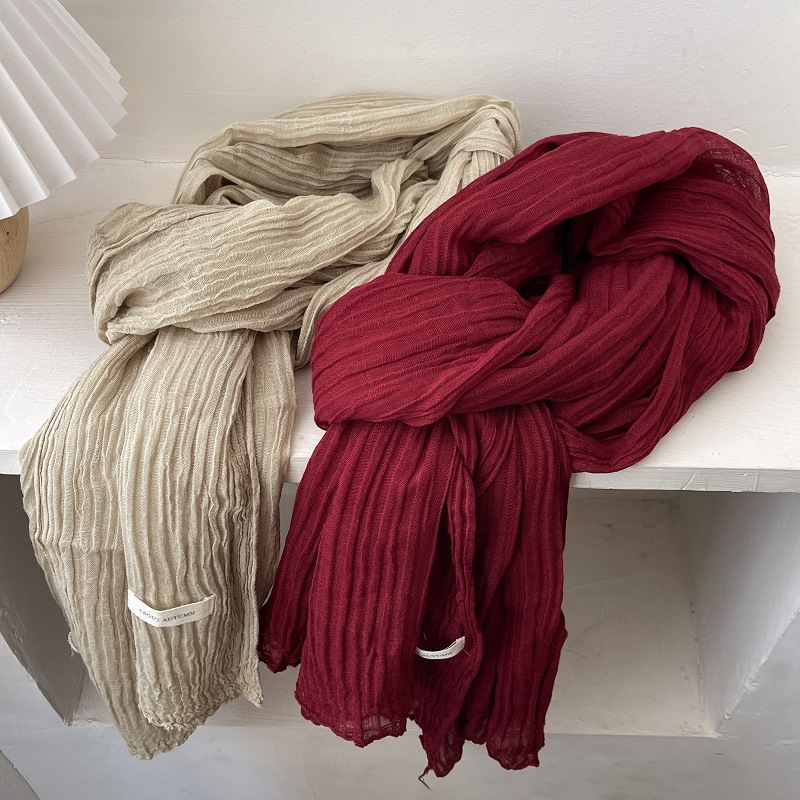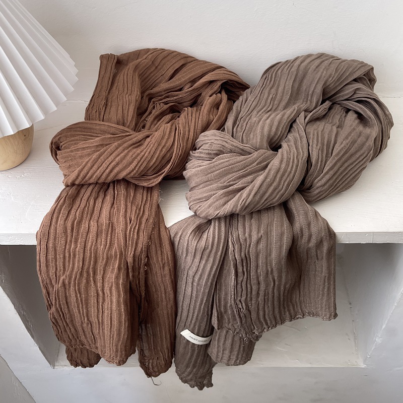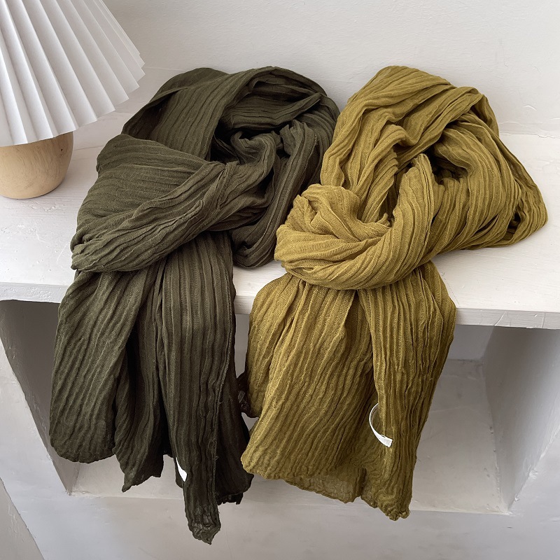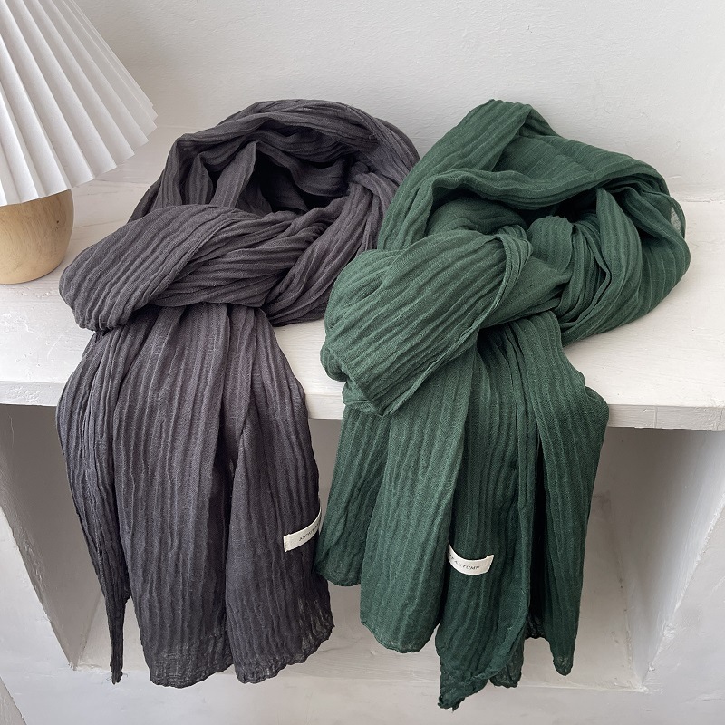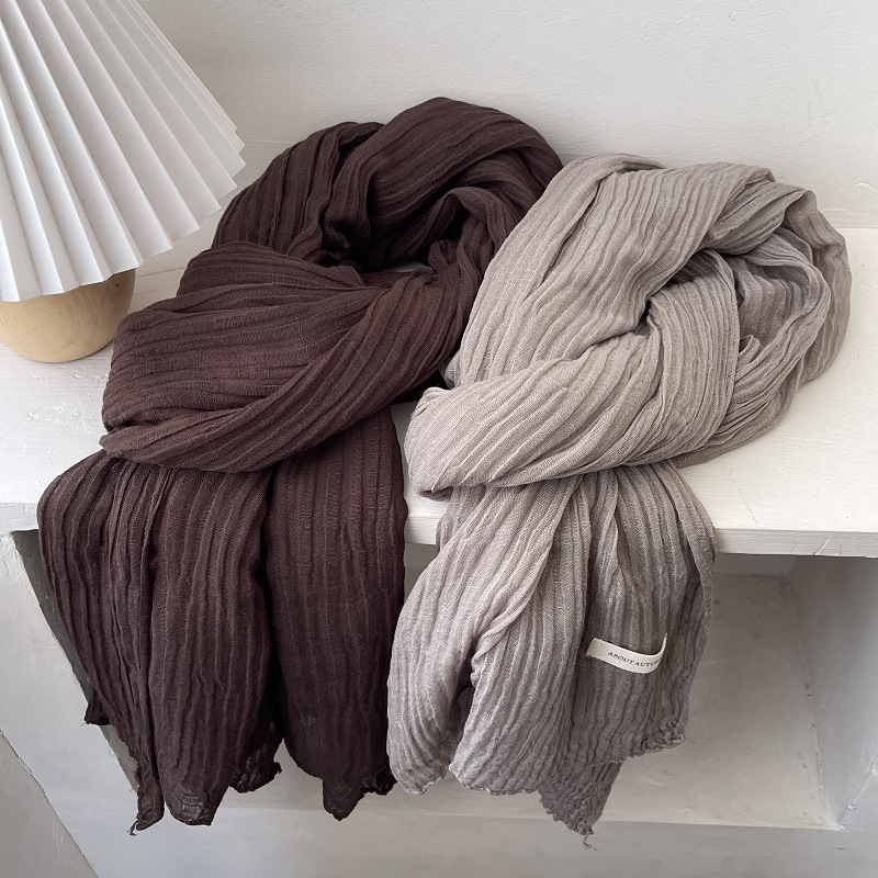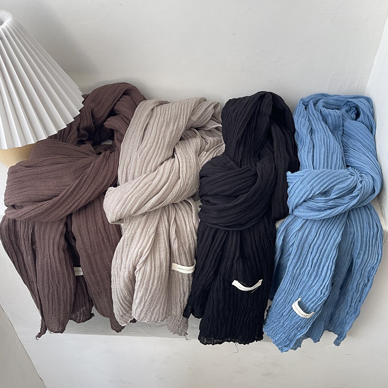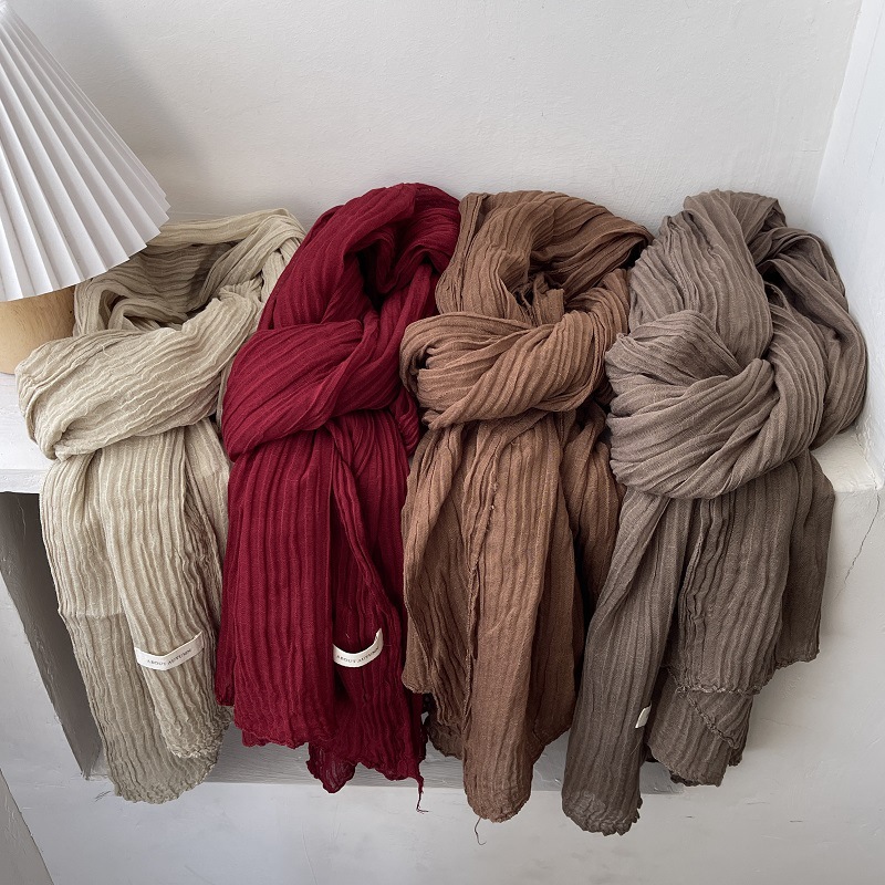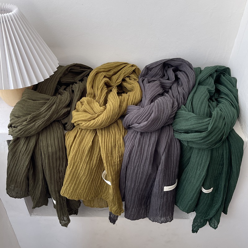 고대 초기 센스 레트로 솔리드 컬러 코튼 및 리넨 주름 스카프 여성 예술 스카프 목도리 봄과 여름 분위기 센스 올 매치 스카프스토어 가기