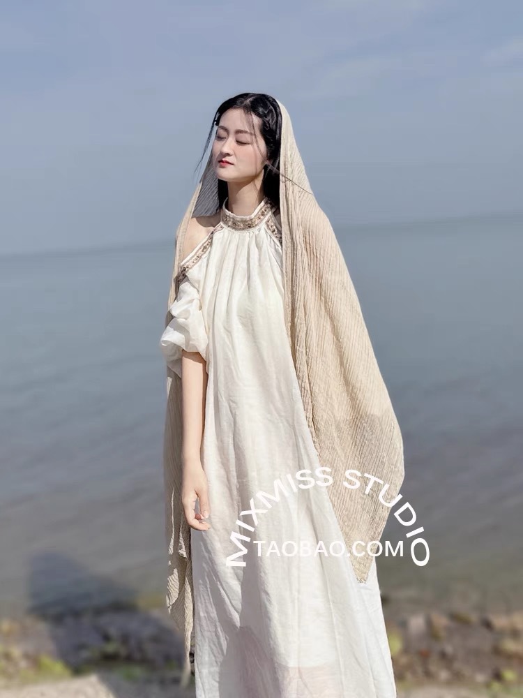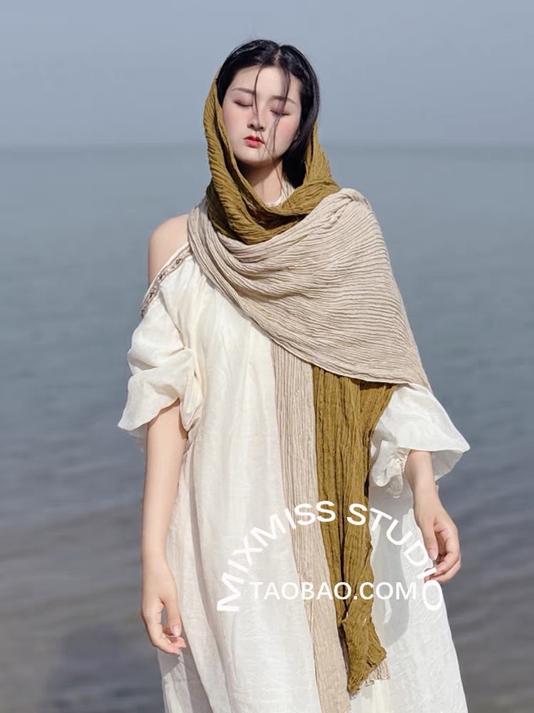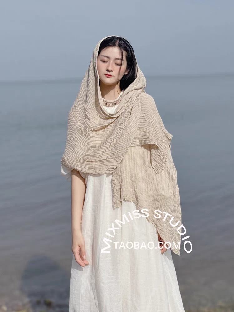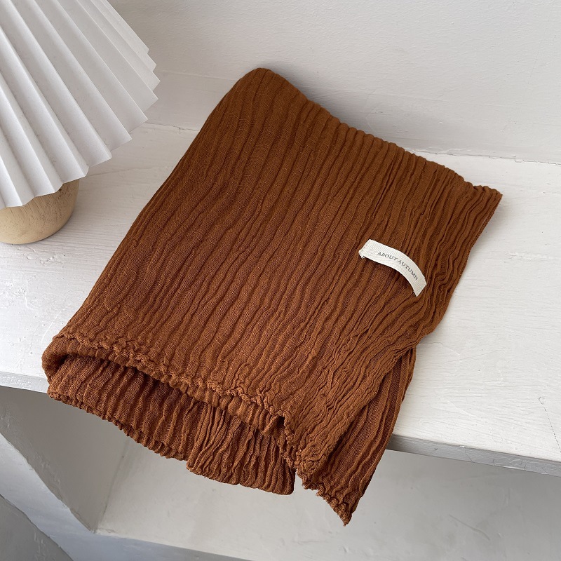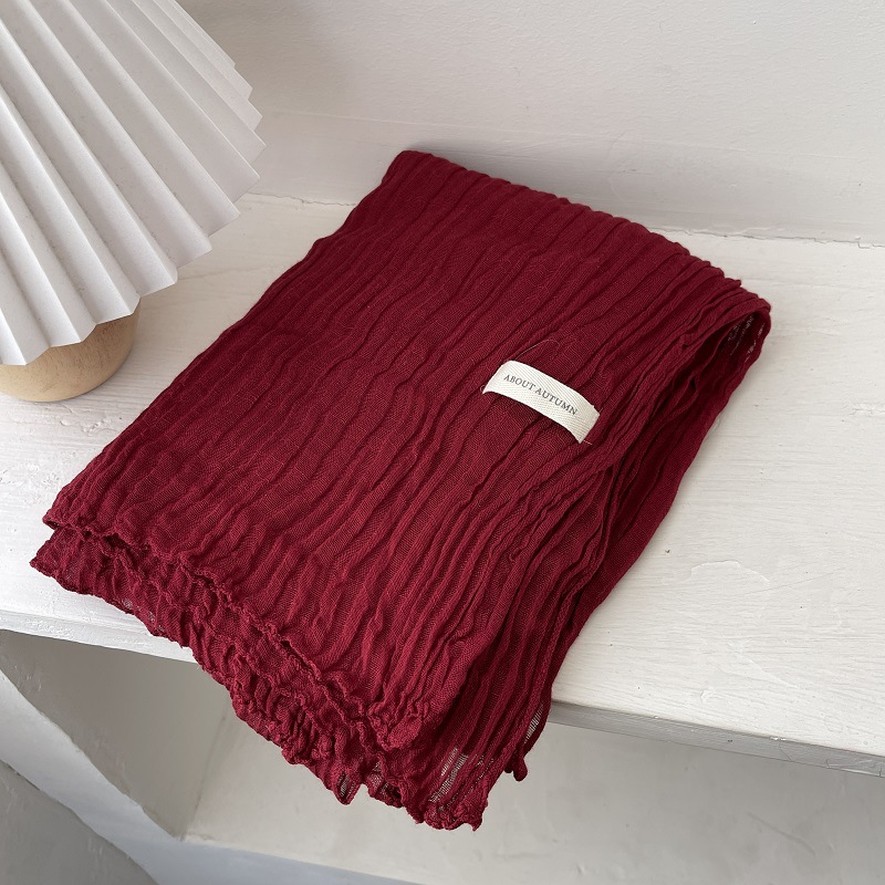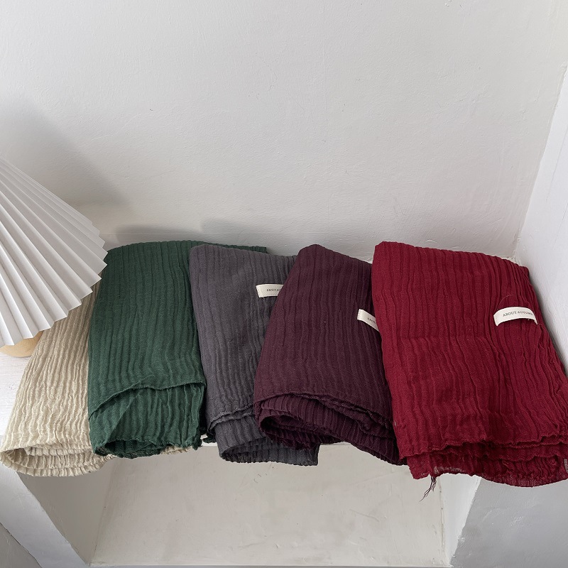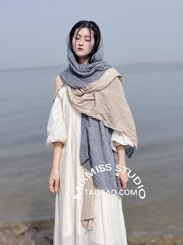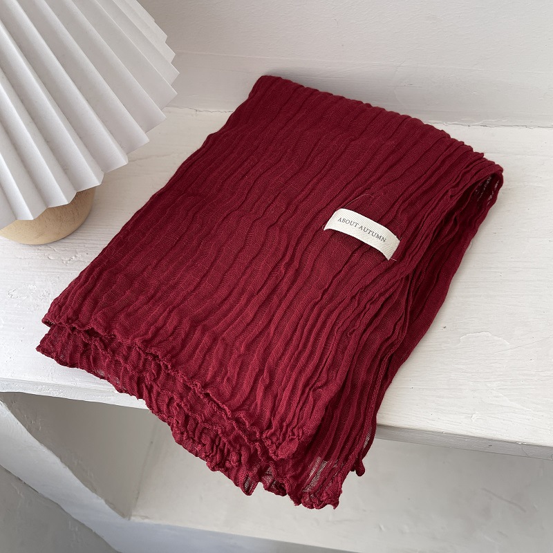 고대 초기 센스 레트로 솔리드 컬러 코튼 및 리넨 주름 스카프 여성 예술 스카프 목도리 봄과 여름 분위기 센스 올 매치 스카프스토어 가기
