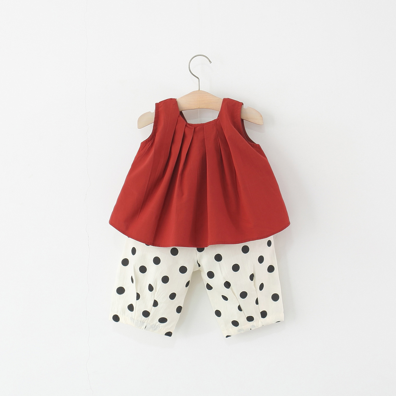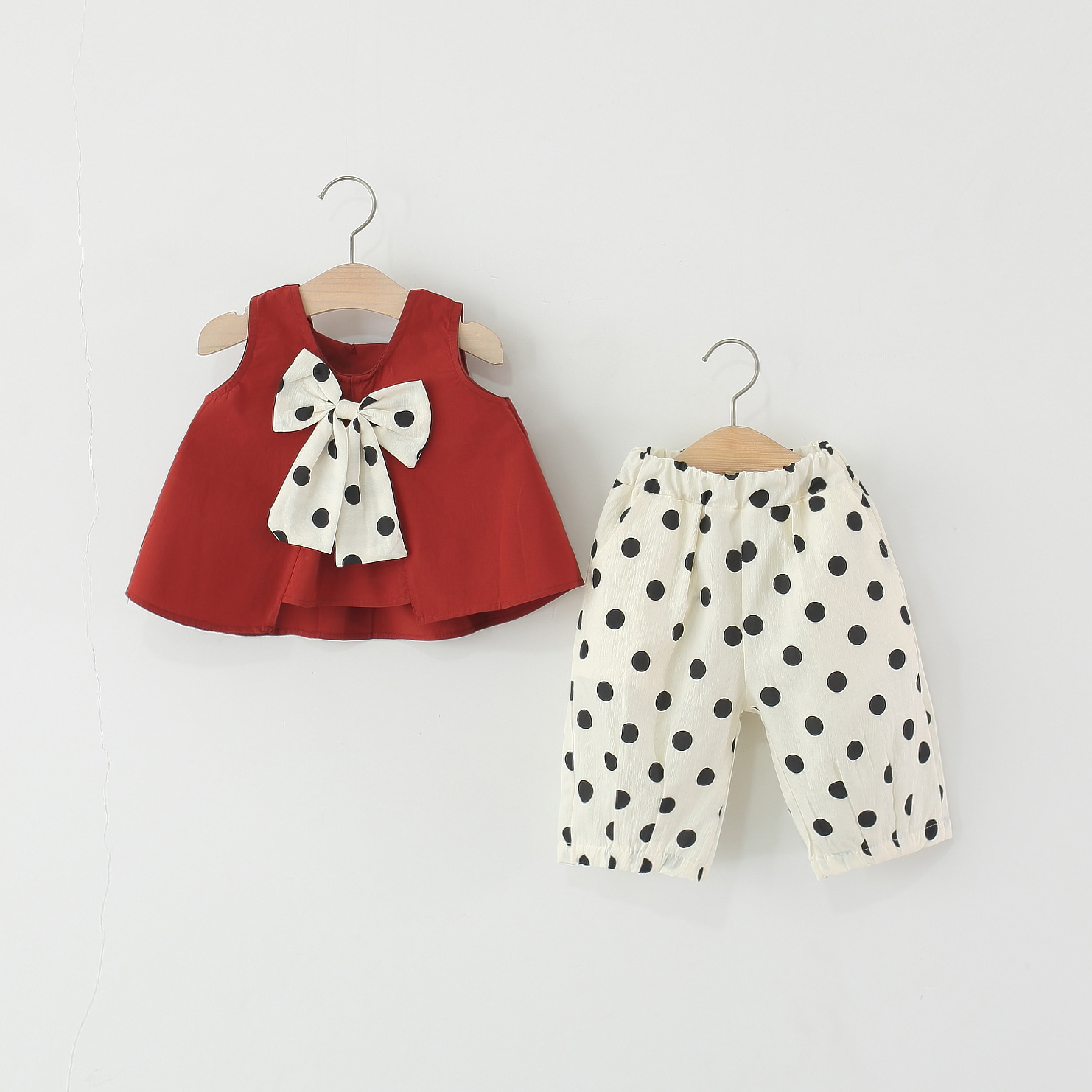 아동복 2025 신상 소녀 세트 여름 아기 소녀 활 조끼 폴로 도트 카프리 바지 투피스 세트스토어 가기