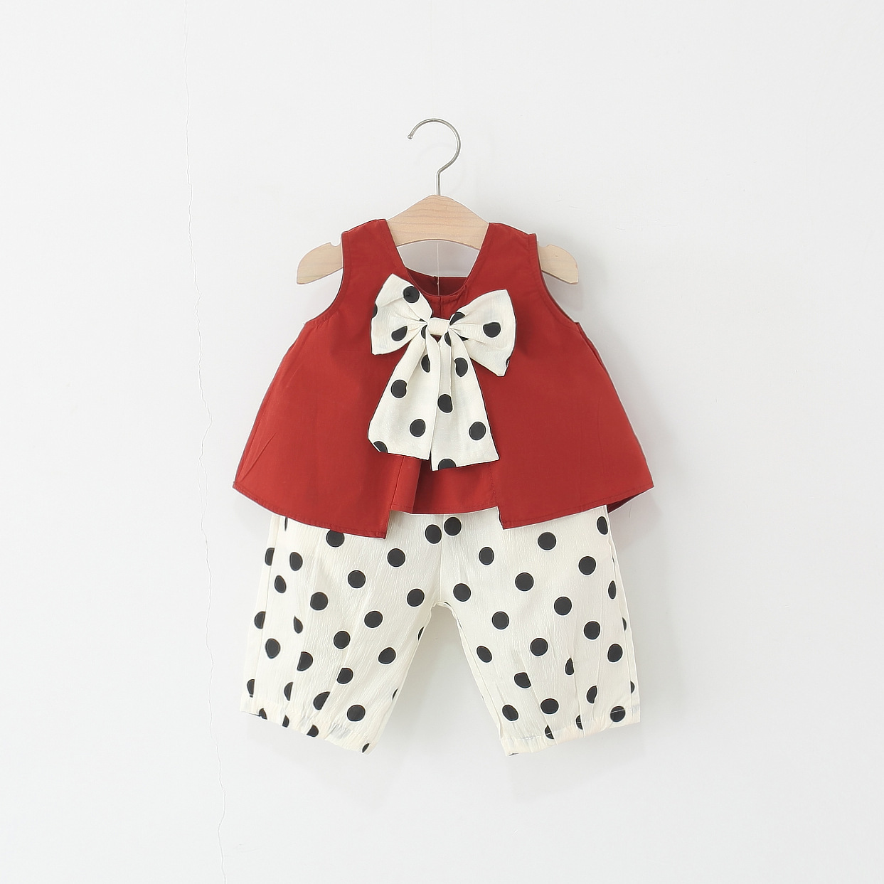 아동복 2025 신상 소녀 세트 여름 아기 소녀 활 조끼 폴로 도트 카프리 바지 투피스 세트