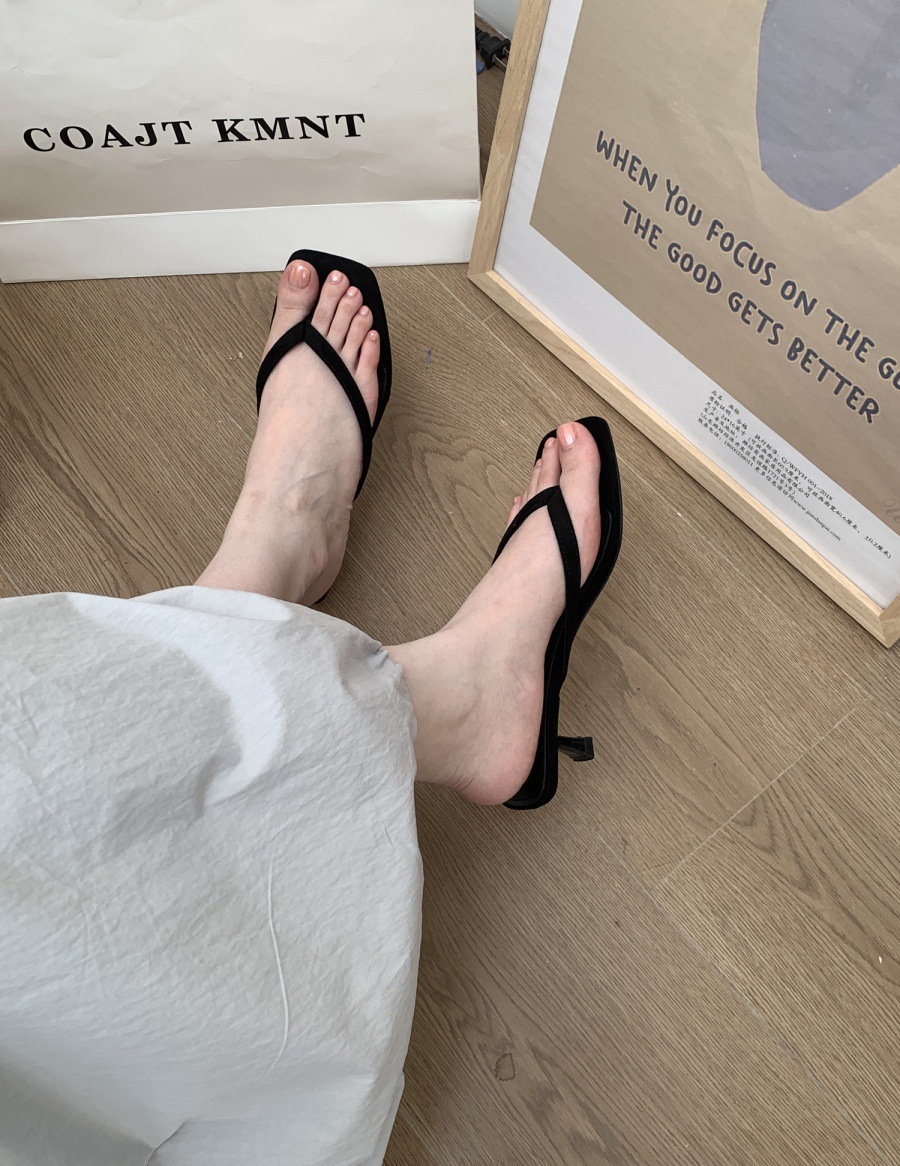 플립 플롭스 여성 여름 아우터웨어 2025 스퀘어 발가락 새끼 고양이와 프랑스 스타일 사이버 Celebrator 미드 힐 샌들 하프 셔츠와 함께 새로운 스타일 플립 플롭