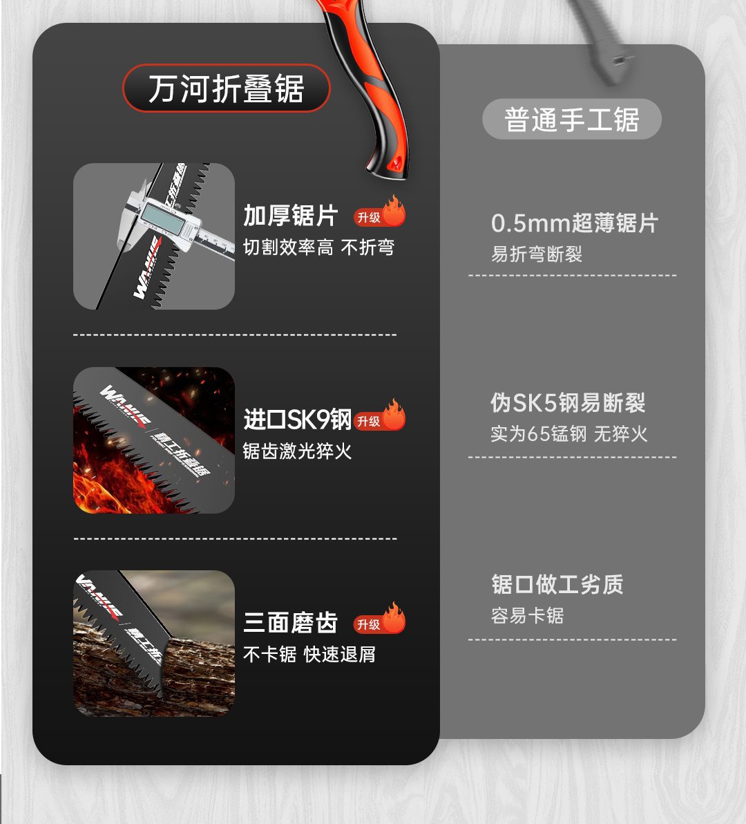 • 일체형 복합 담금질 톱 + 톱 세트(전체 길이 570mm)