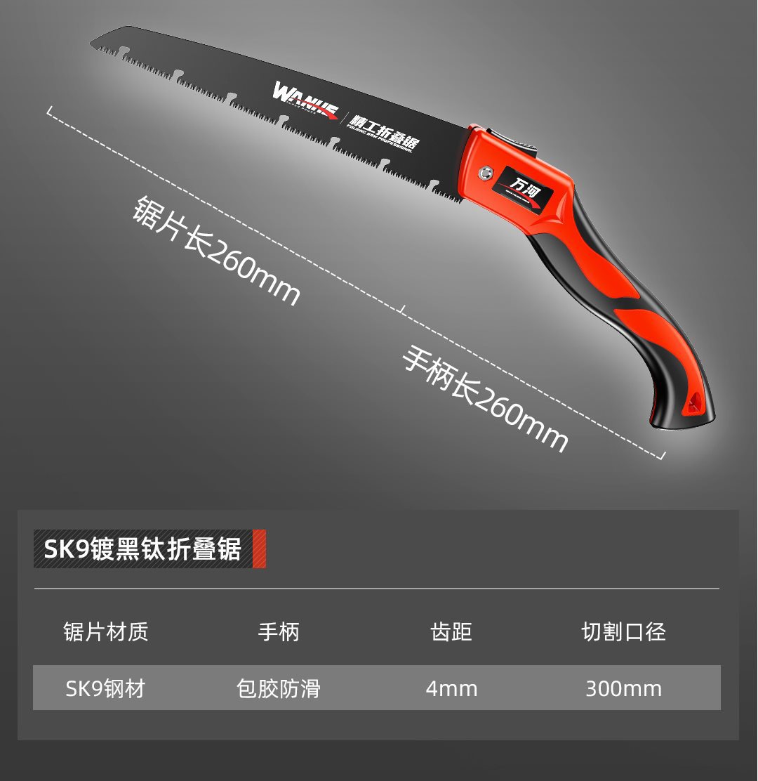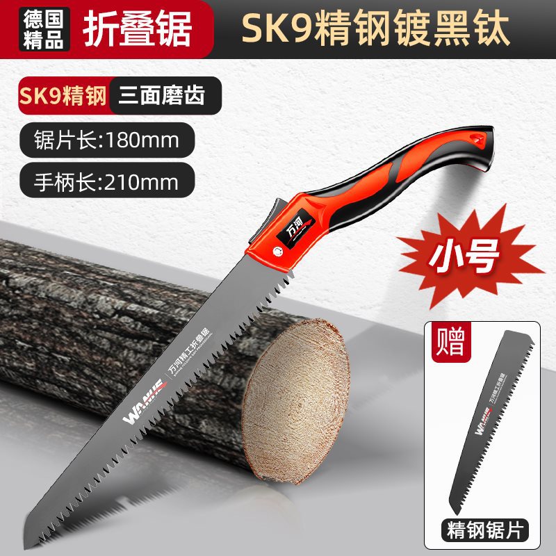 • SK9 스테인리스 스틸 흑색 티타늄 도금 [특대형] 접이식 톱 + 스테인리스 스틸 톱날