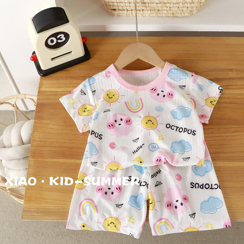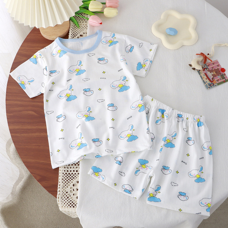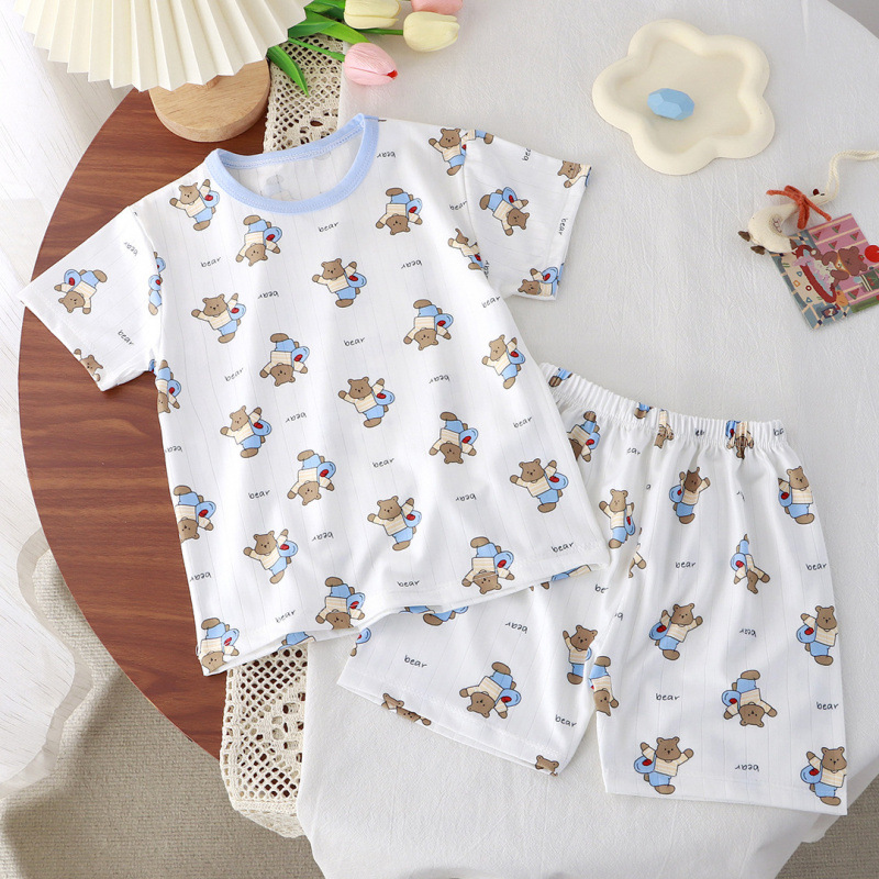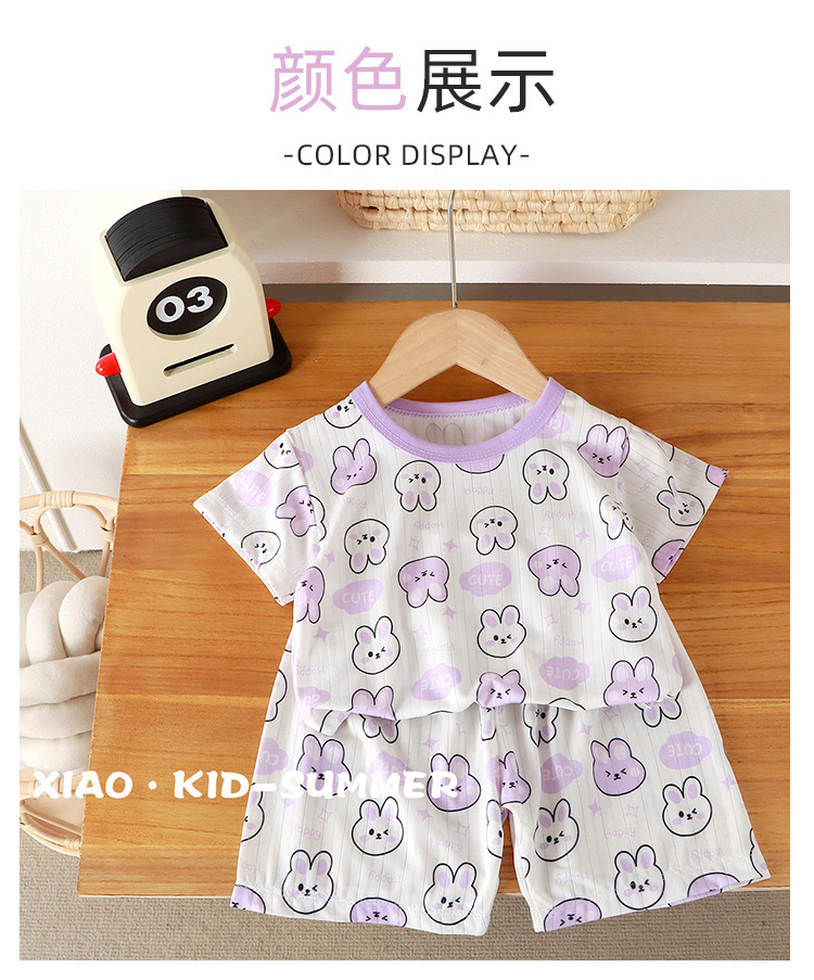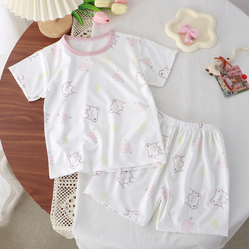 아동용 남녀공용 반팔슈트, 에어컨옷, 얇은 잠옷, 남성용 반팔, 여아반바지, 홈웨어 2종