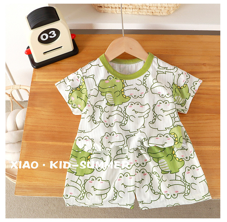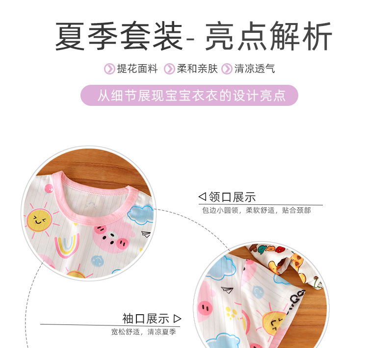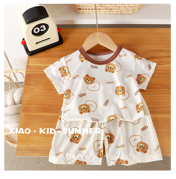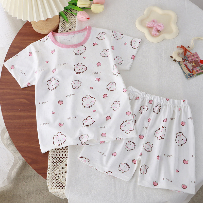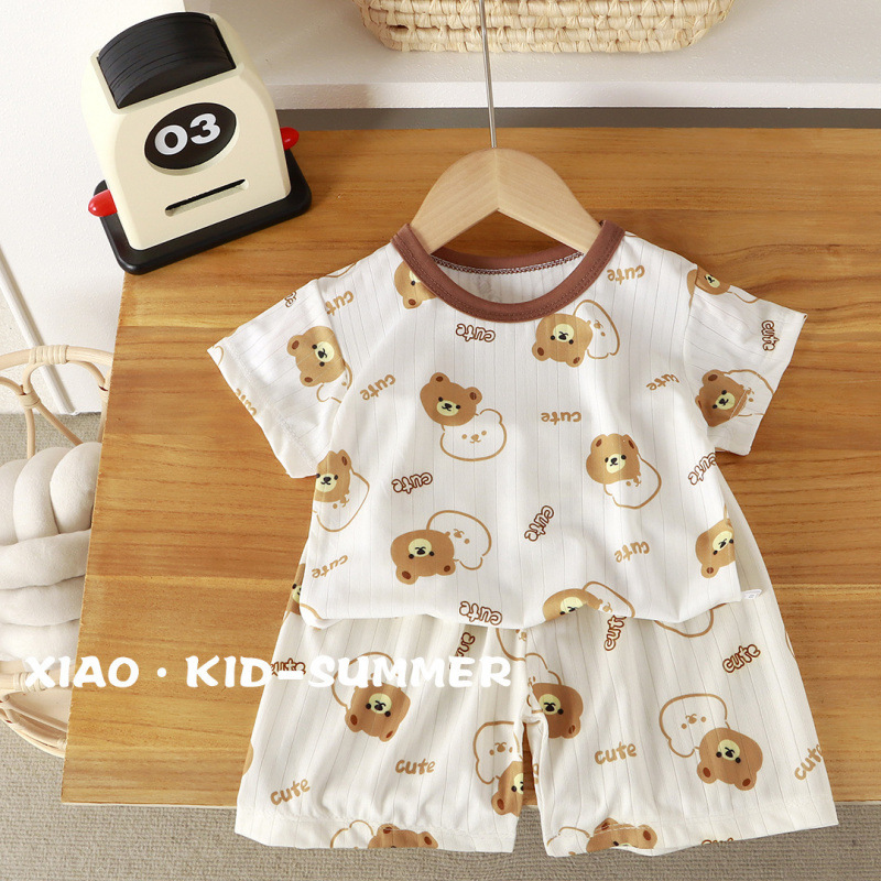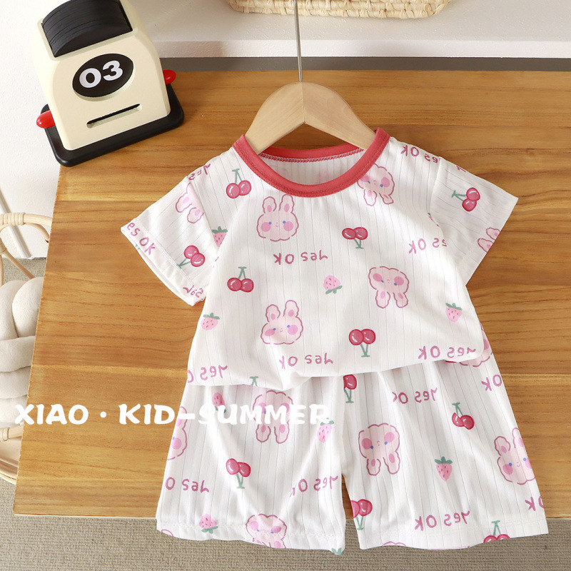 아동용 남녀공용 반팔슈트, 에어컨옷, 얇은 잠옷, 남성용 반팔, 여아반바지, 홈웨어 2종