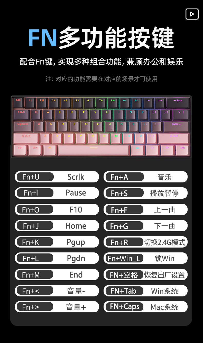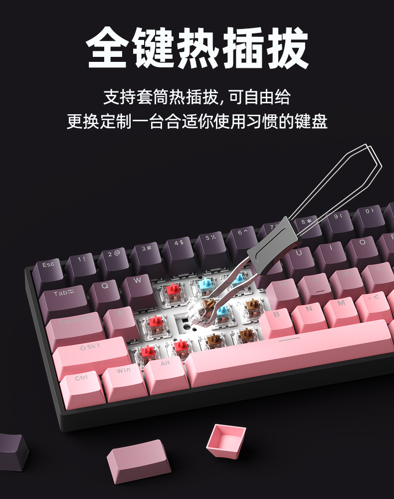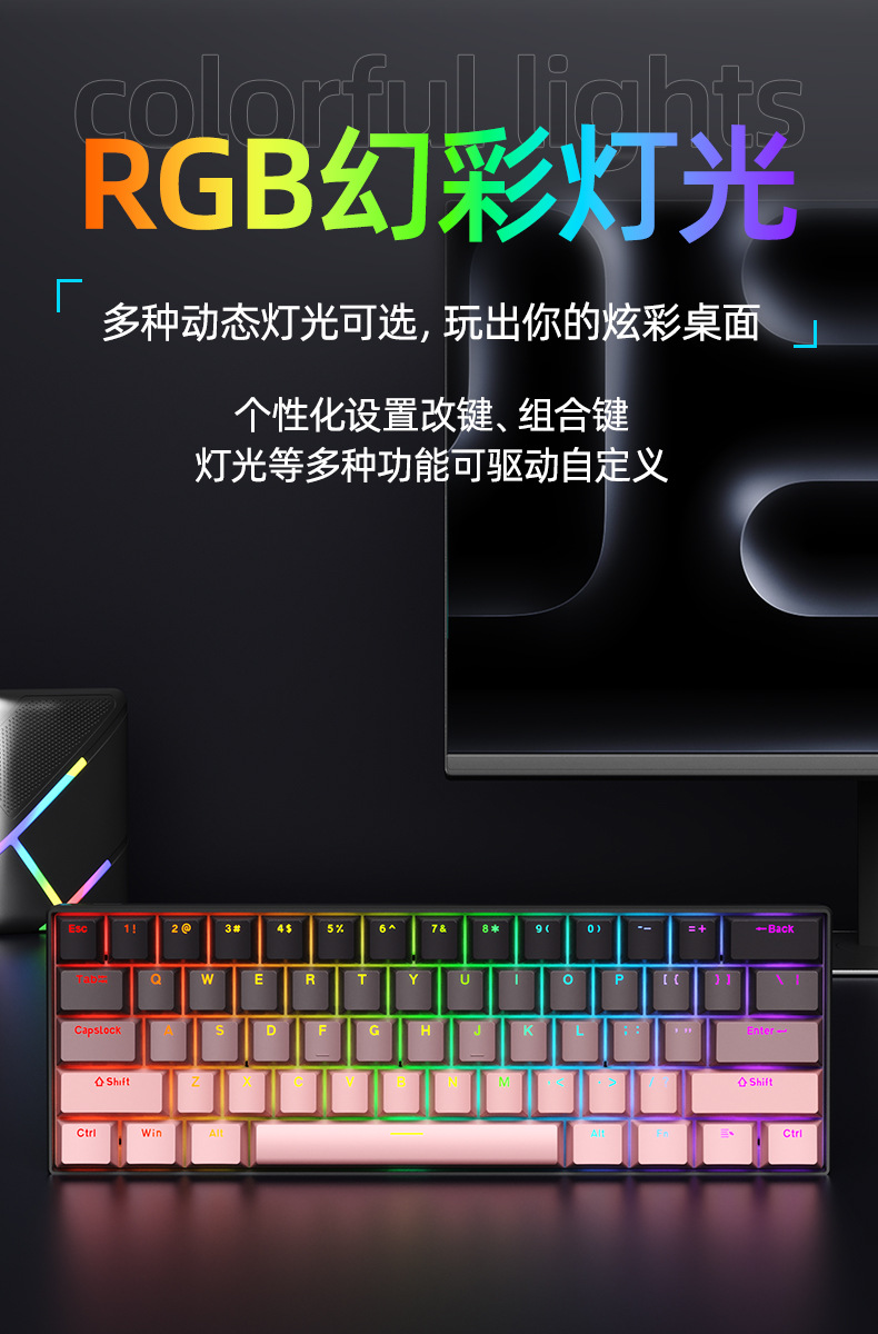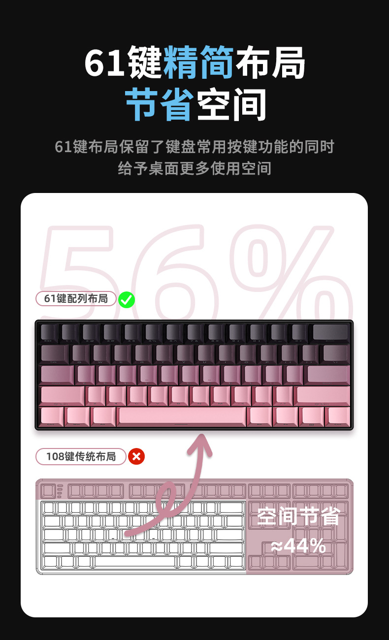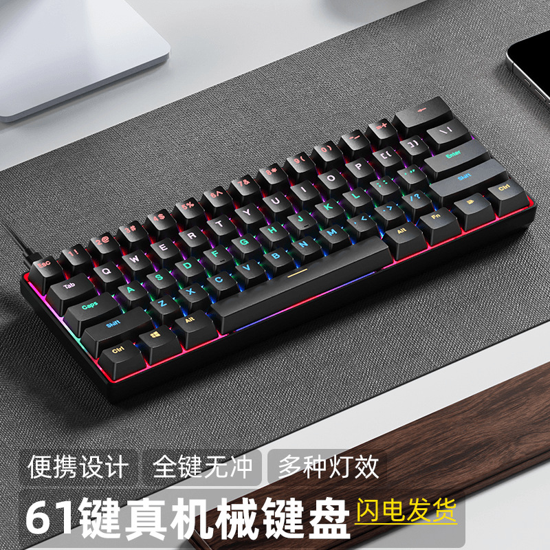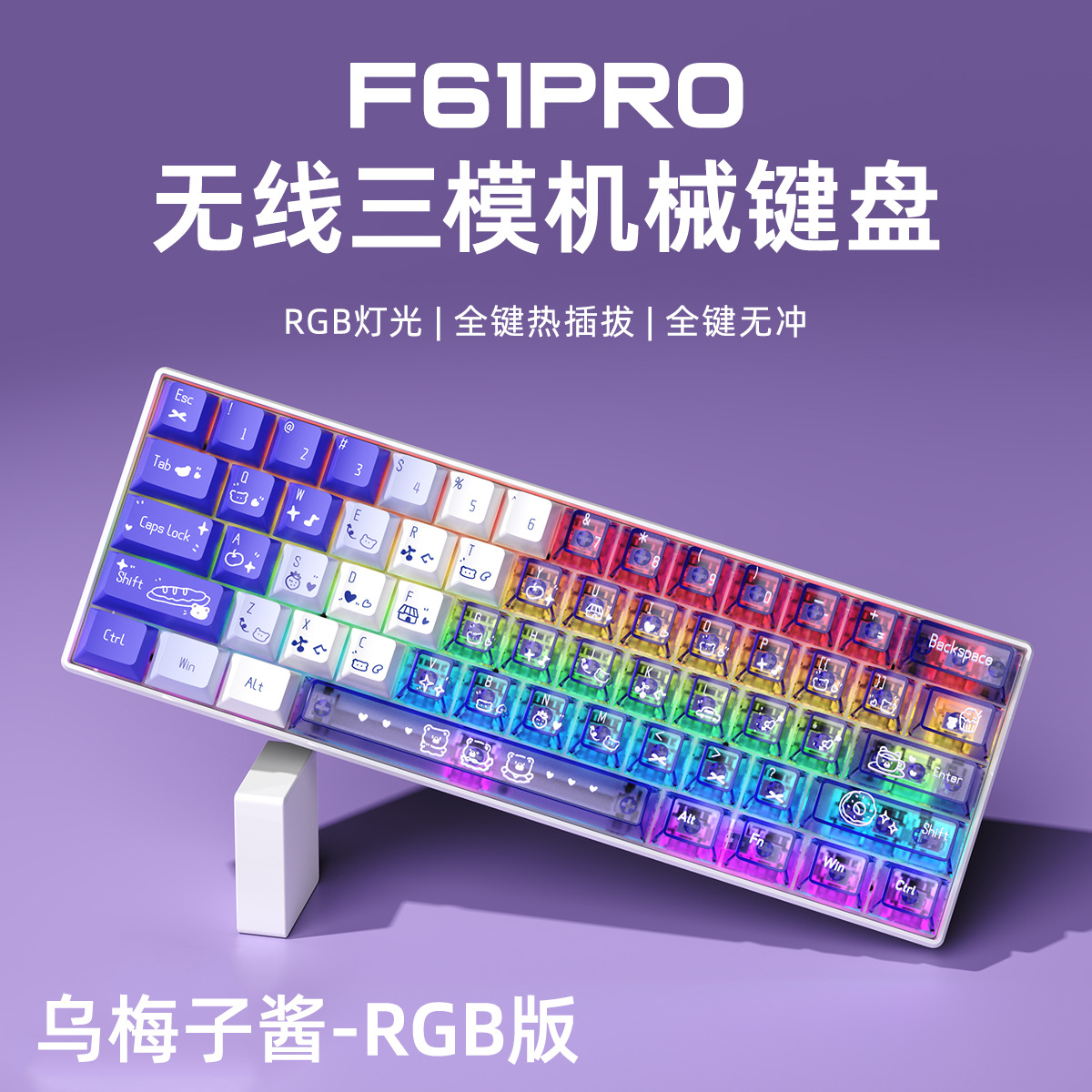 61키 무선 3모드 기계식 키보드 유선 소형 휴대용 노트북 데스크탑 컴퓨터 빨간색 축 차 축 핫 스왑 가능스토어 가기