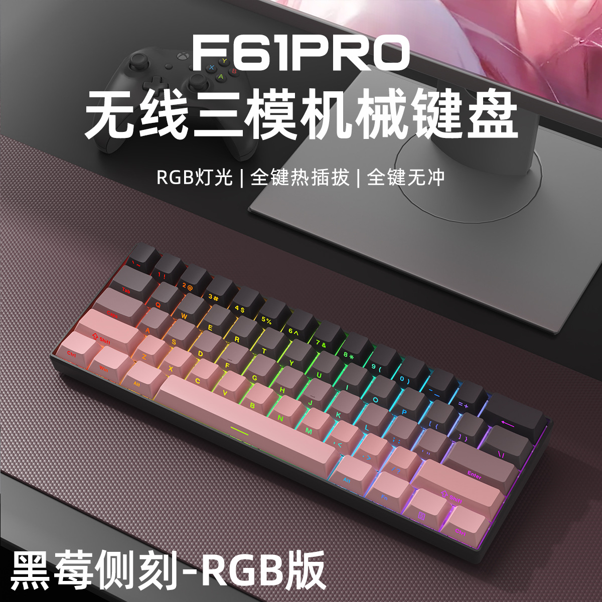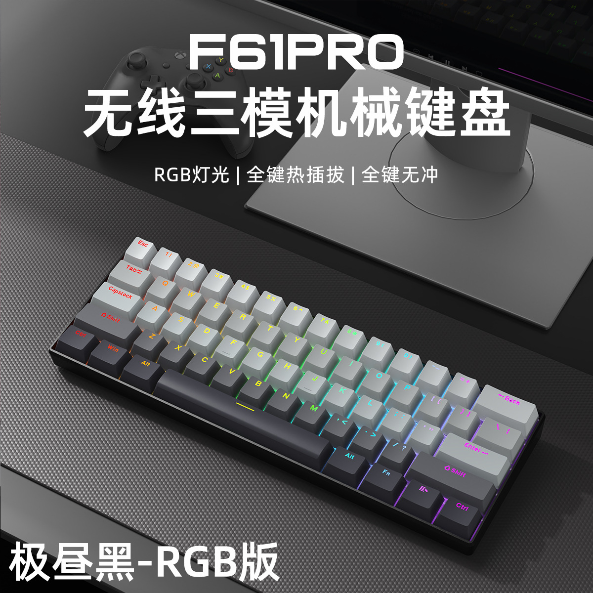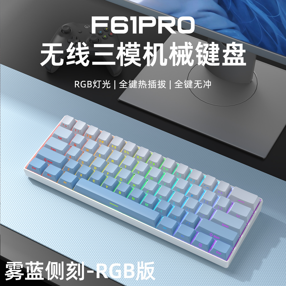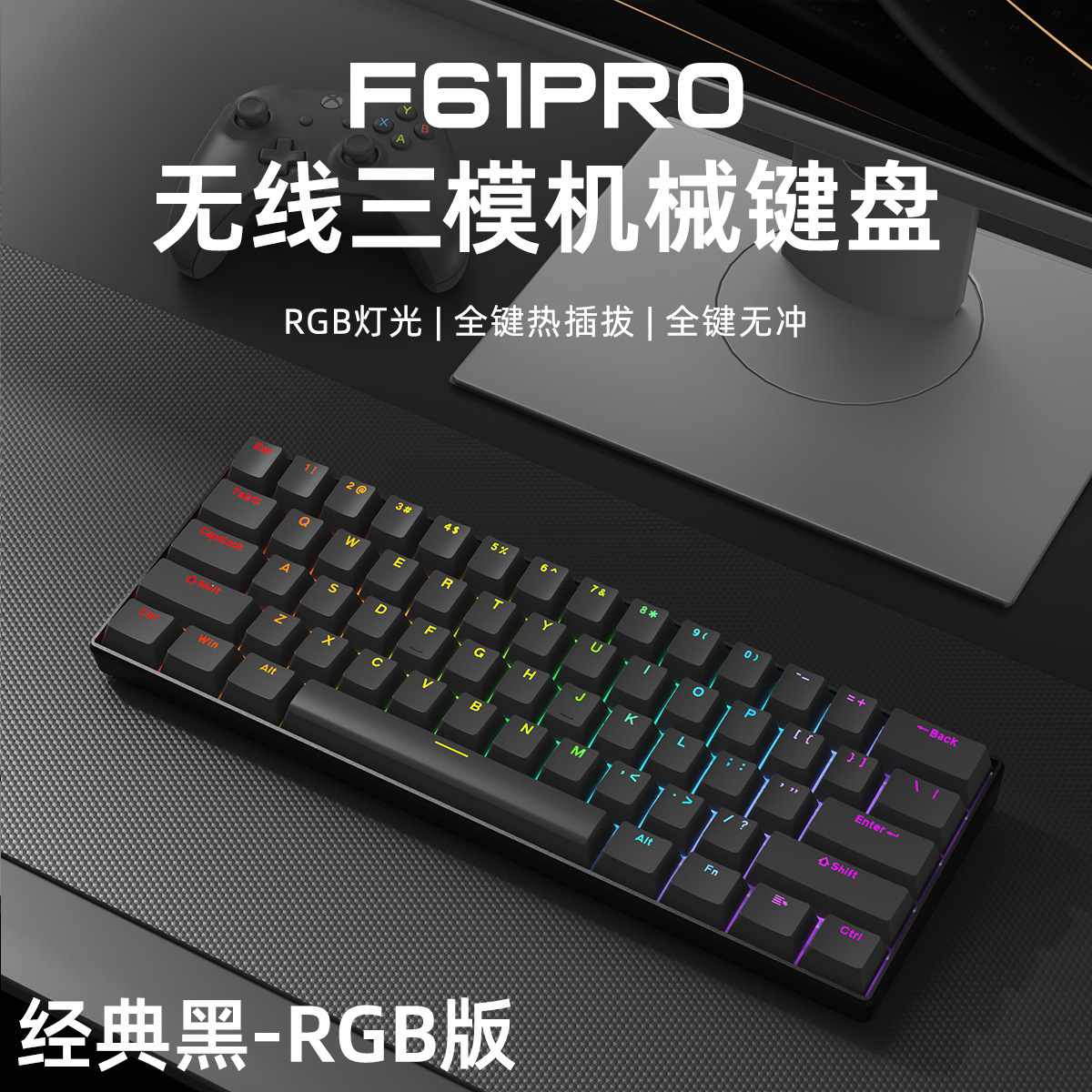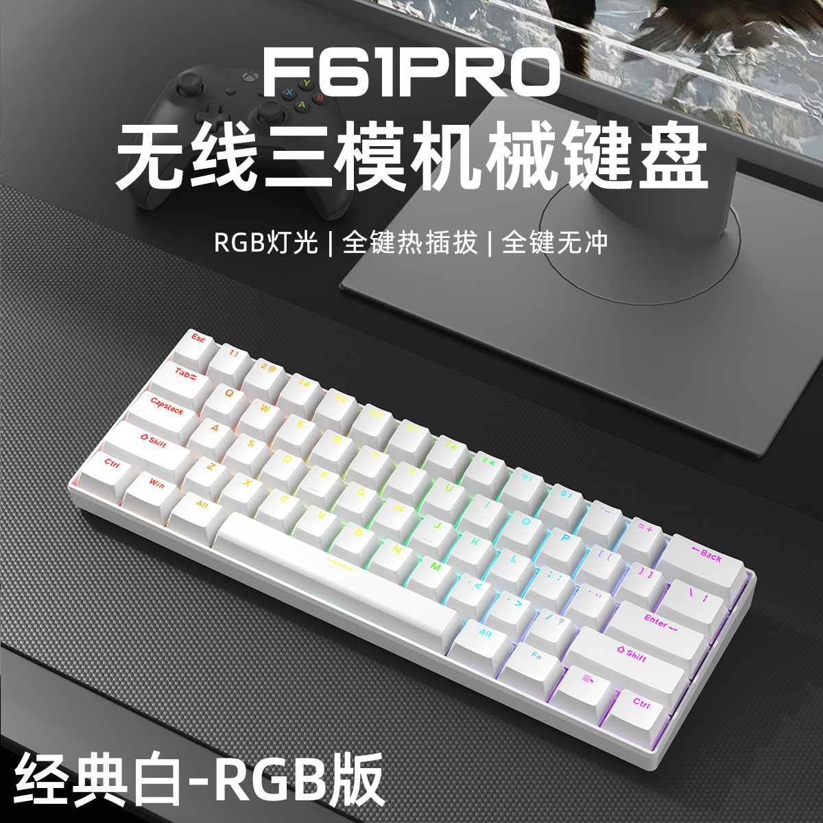 61키 무선 3모드 기계식 키보드 유선 소형 휴대용 노트북 데스크탑 컴퓨터 빨간색 축 차 축 핫 스왑 가능