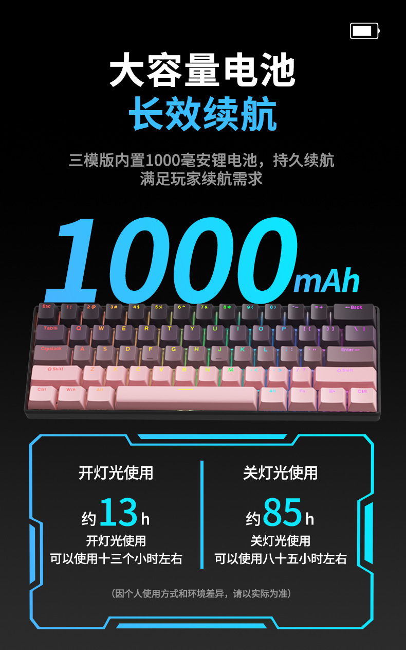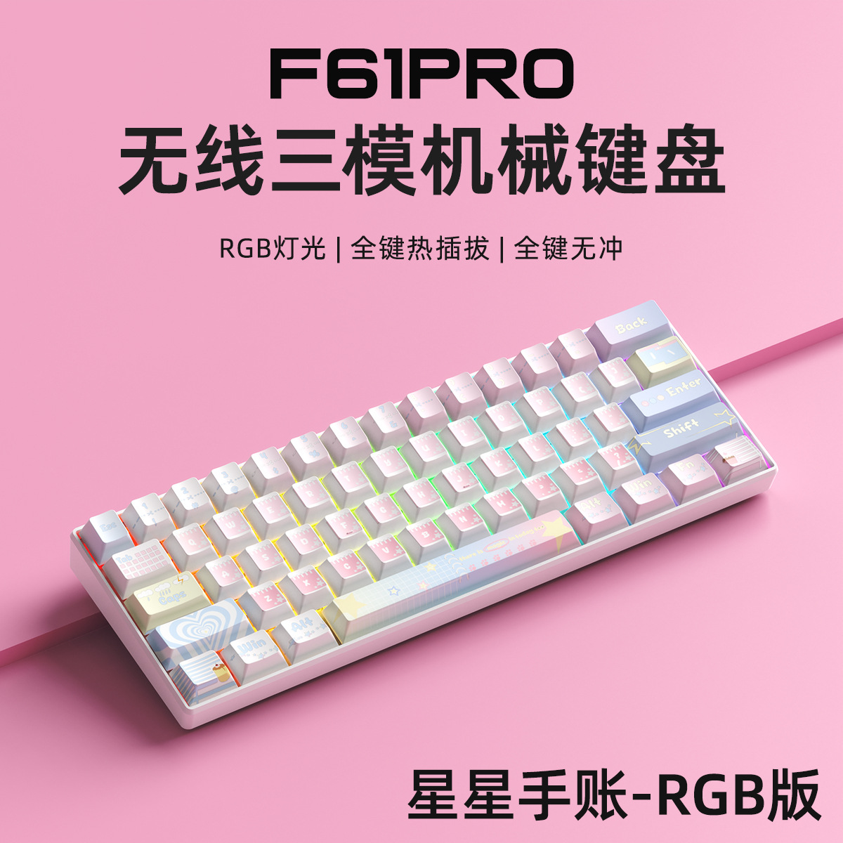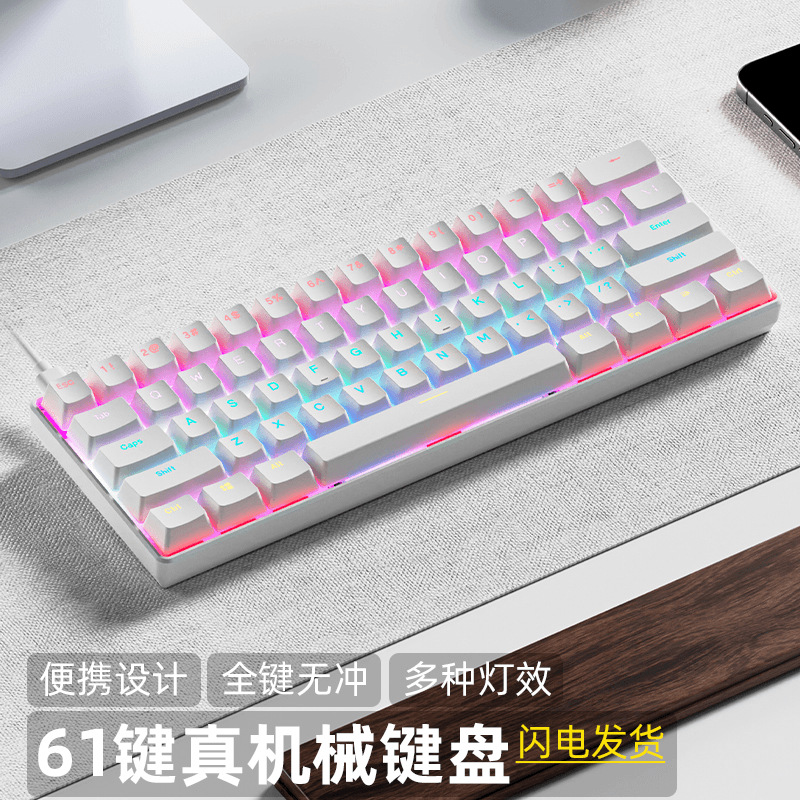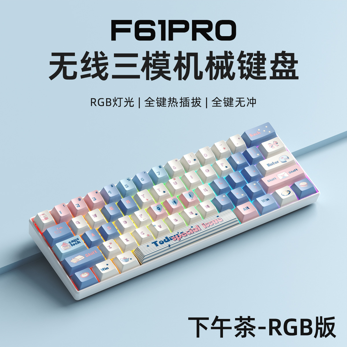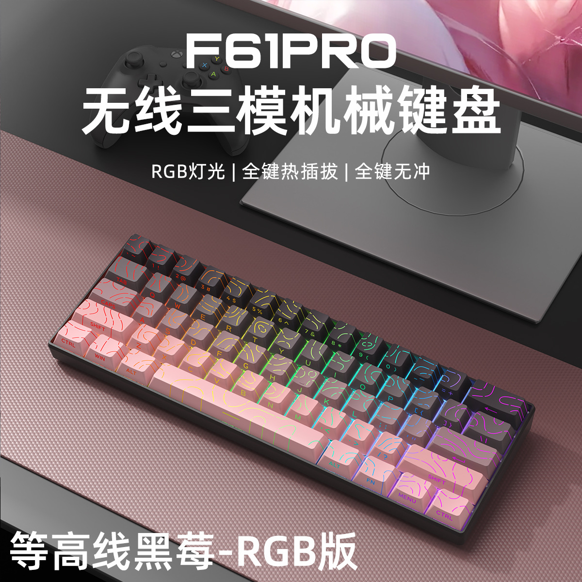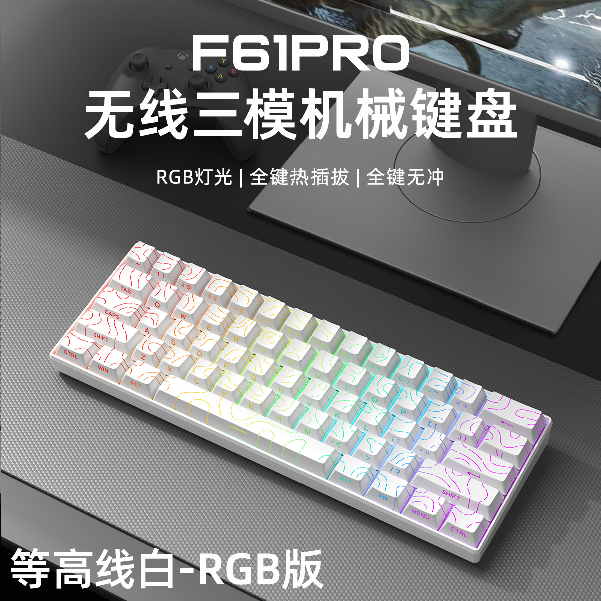 61키 무선 3모드 기계식 키보드 유선 소형 휴대용 노트북 데스크탑 컴퓨터 빨간색 축 차 축 핫 스왑 가능