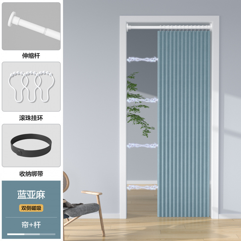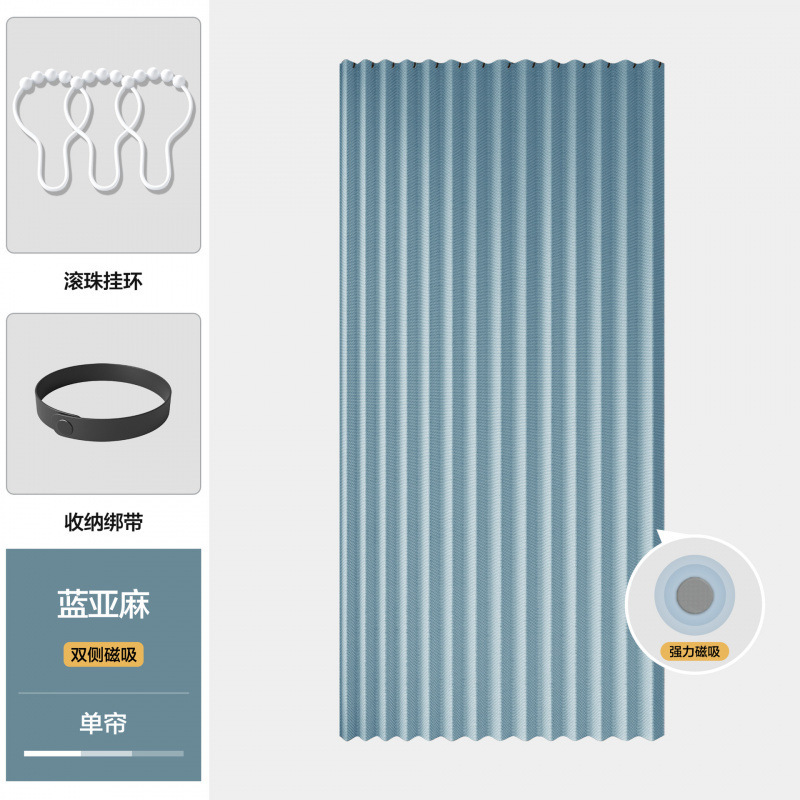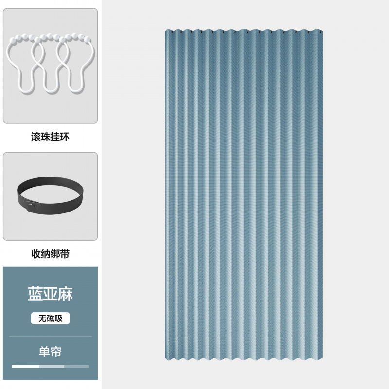 • [자기흡입 없음] 파란색 접이식 도어커튼 (커튼+봉+흰색 볼링)