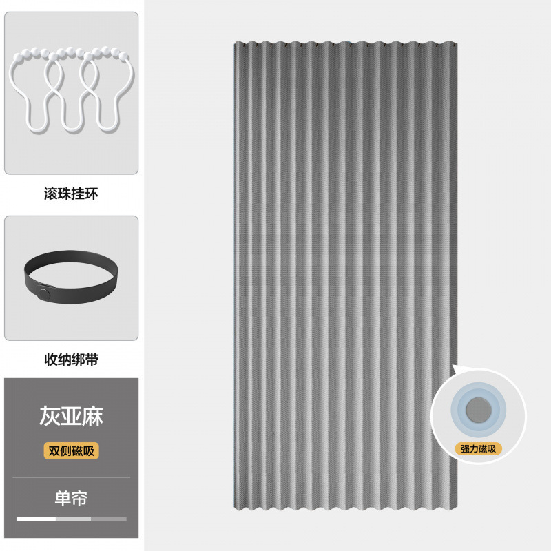 • [양면자석흡입] 그레이 접이식 도어커튼 (커튼+봉+화이트 볼링)