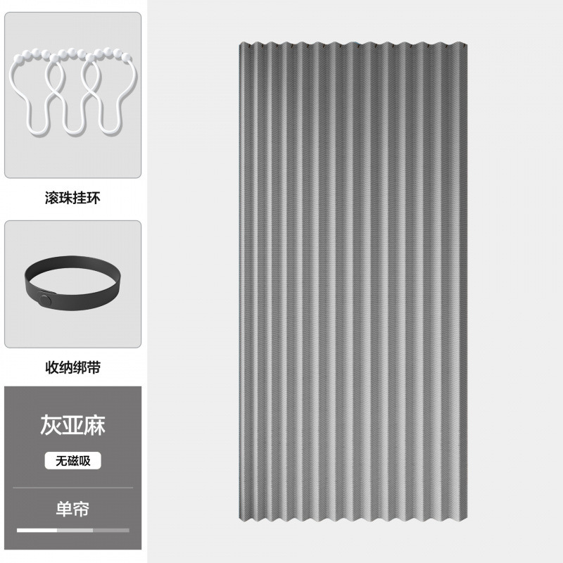 • [자기흡입 없음] 그레이 접이식 도어커튼 (커튼+봉+화이트 볼링)