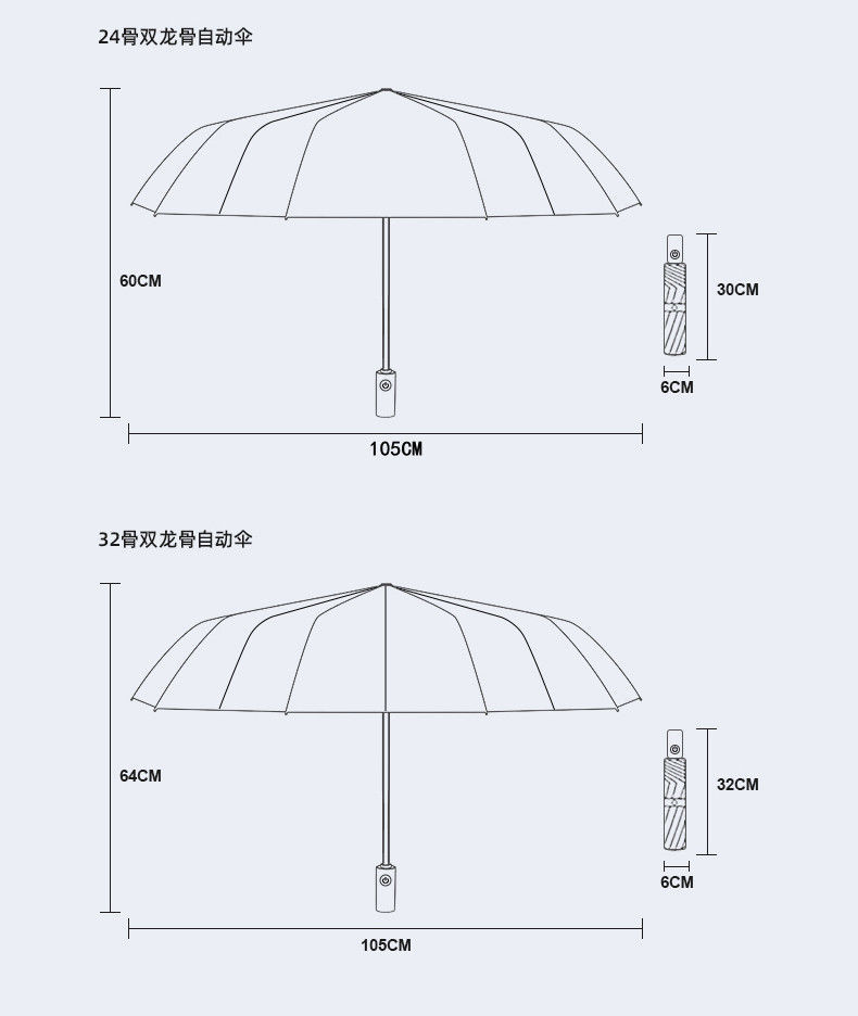 • 대형 이중우산 [폭동방지갈비 24개] 그레이✦