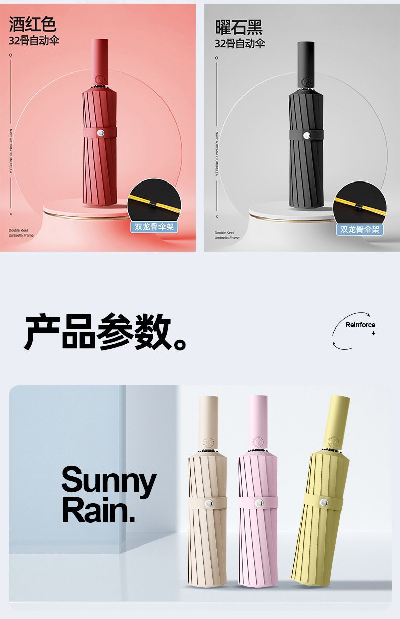 남성용 대형 완전 자동 접이식 우산, 강화되고 두껍고 강하며 바람에 강하고 비가 오거나 맑은 여성용 양산 우산스토어 가기