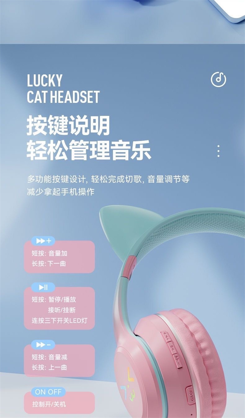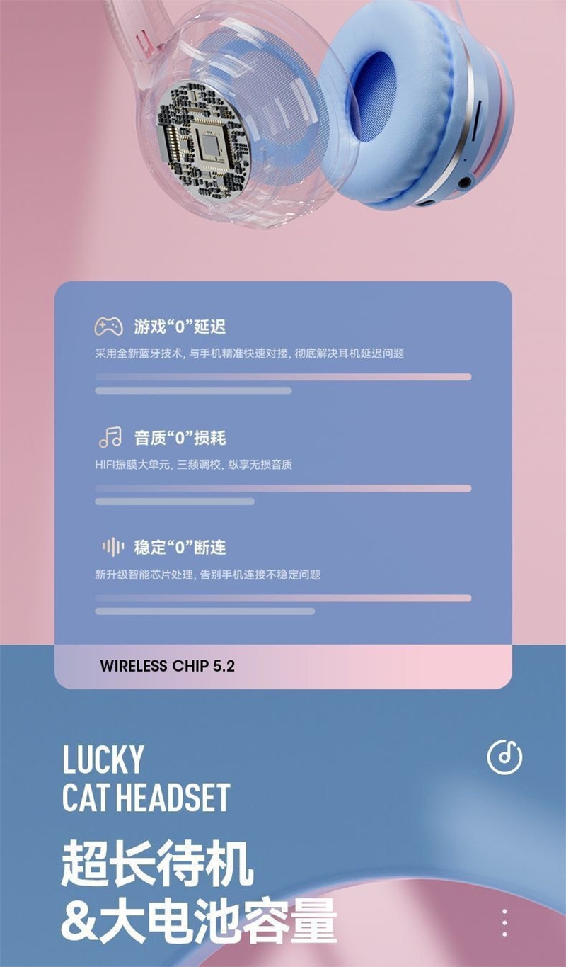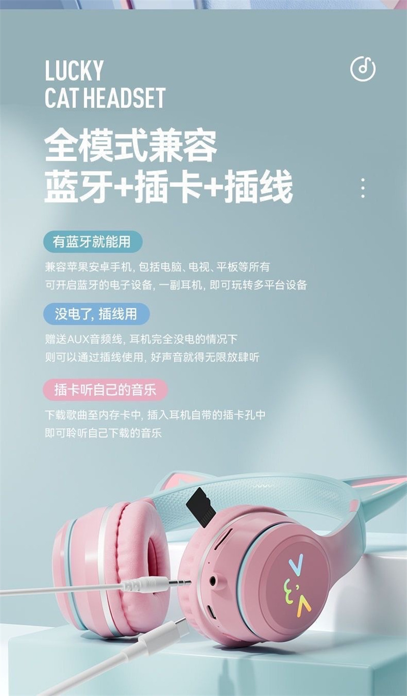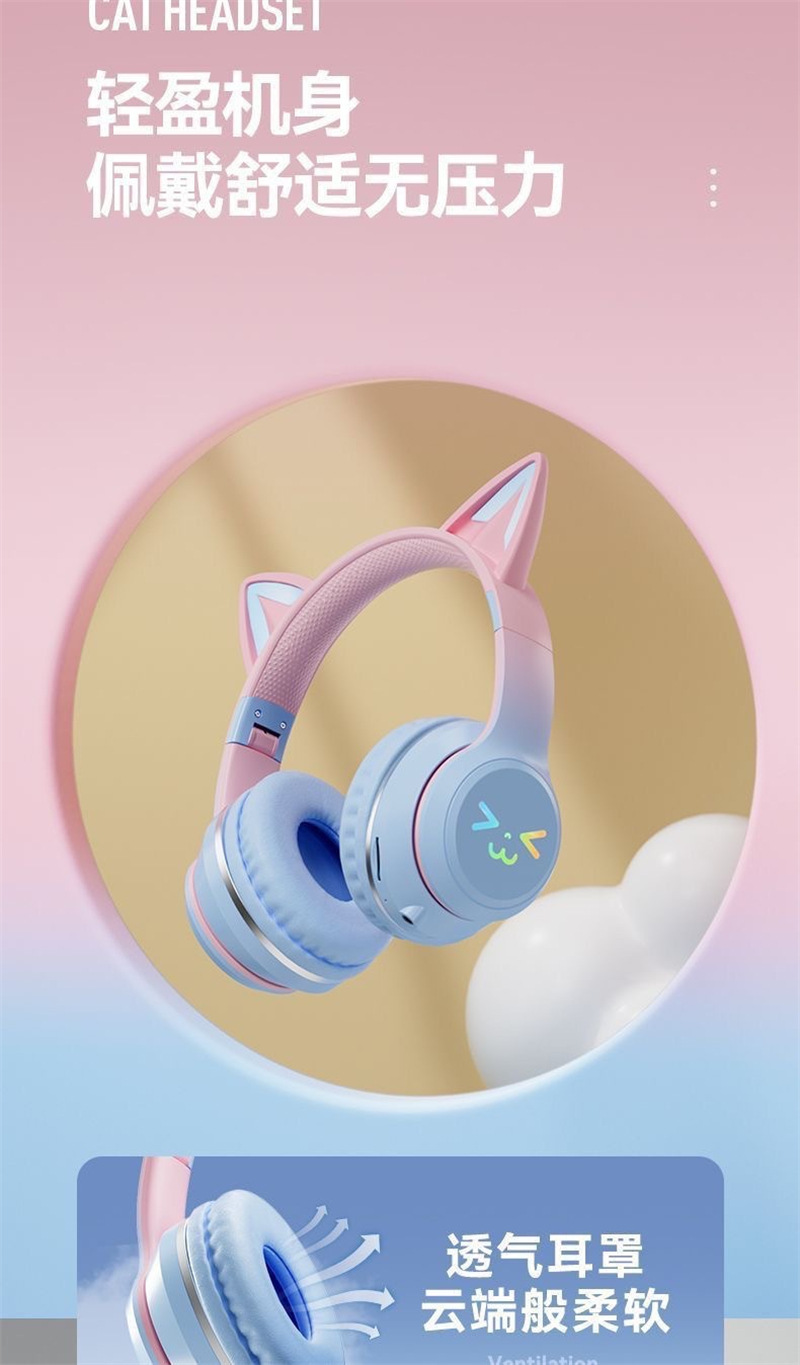 국경 간 인기 BT618 헤드 장착형 블루투스 헤드셋 e-스포츠 휴대폰 무선 서브우퍼 헤드셋 일체형 고양이 귀