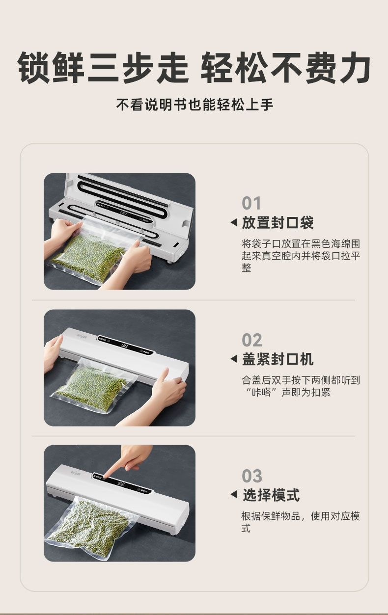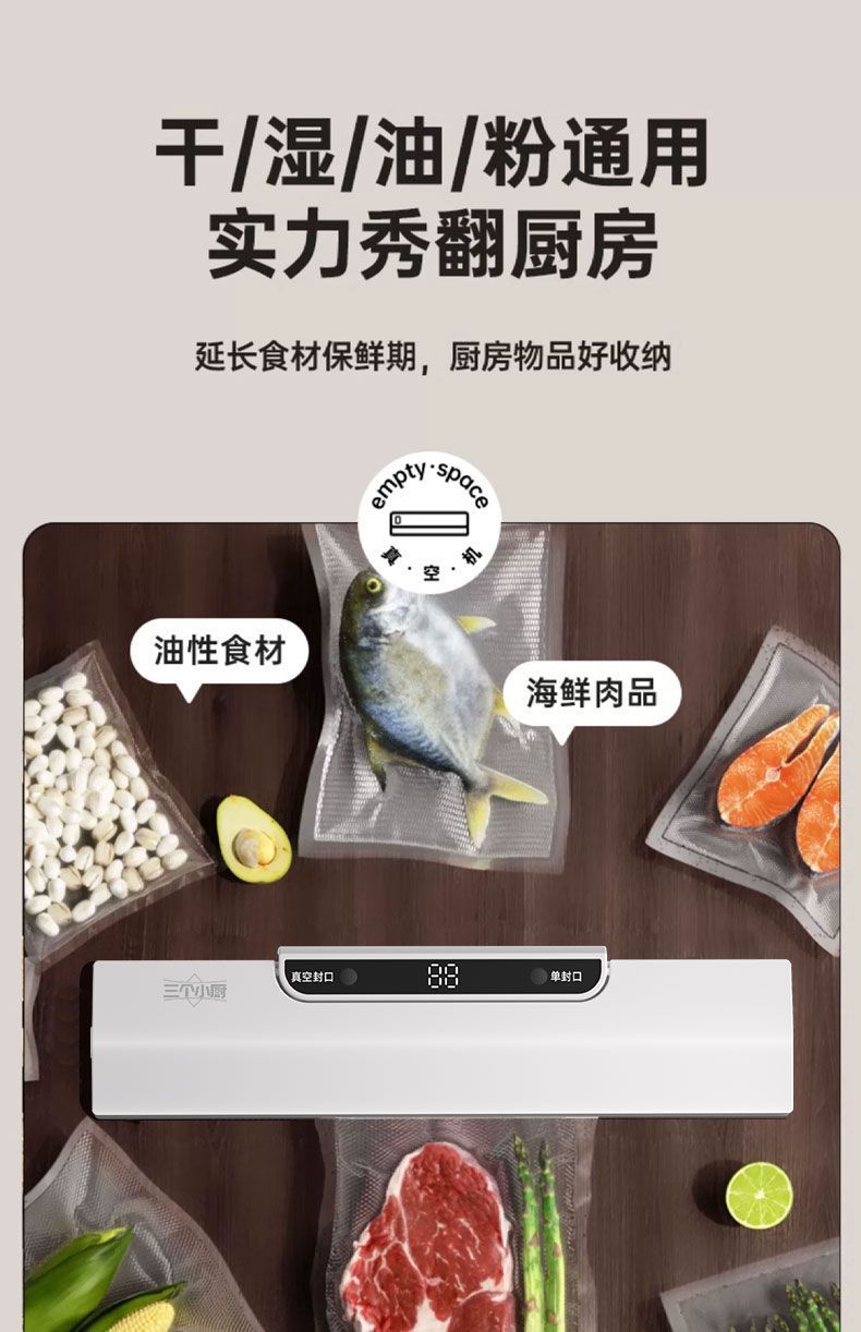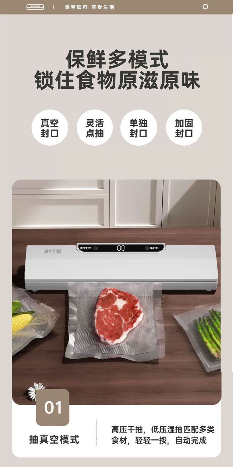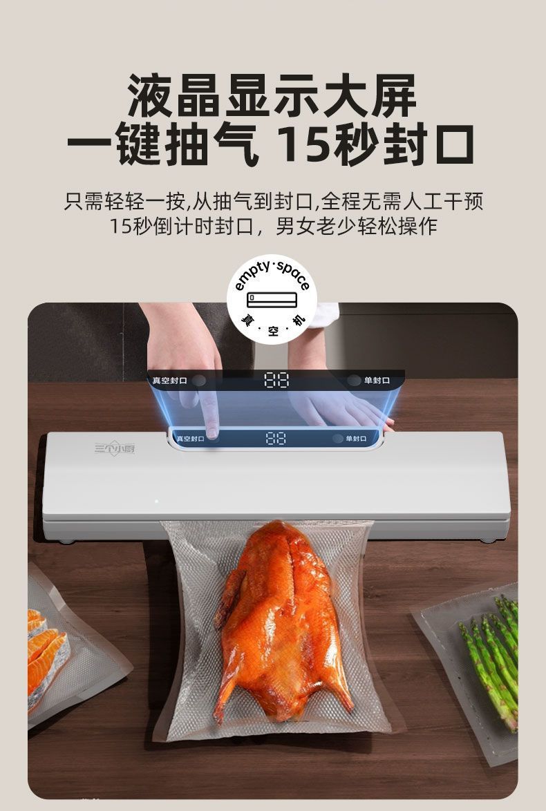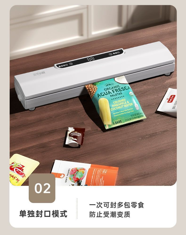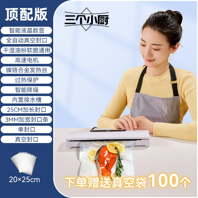 Three Little Chefs 완전 자동 진공 밀봉 기계 가정용 소형 식품 보존 기계 플라스틱 밀봉 기계 밀봉 및 배송