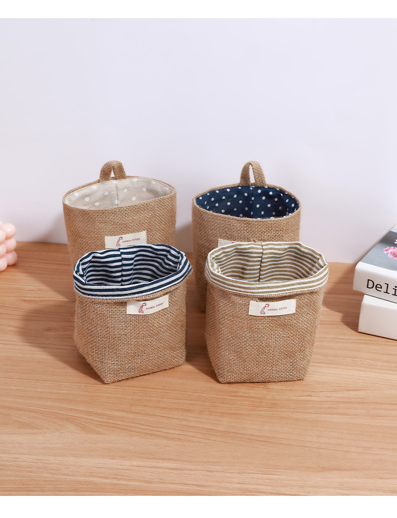 침대 위에 걸 수 있는 벽걸이형 기숙사 침대 미니 린넨 가방, 침대 옆, 침대 옆, 휴대폰 문 뒤 보관함