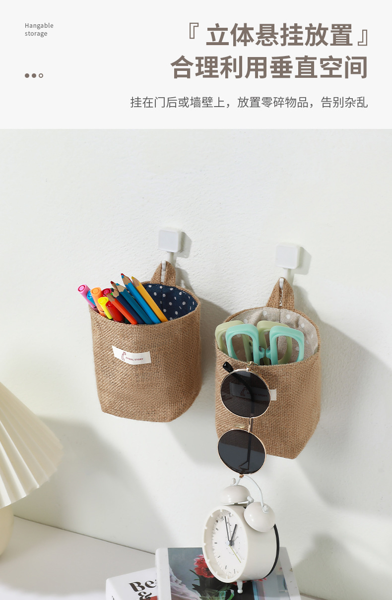 침대 위에 걸 수 있는 벽걸이형 기숙사 침대 미니 린넨 가방, 침대 옆, 침대 옆, 휴대폰 문 뒤 보관함스토어 가기