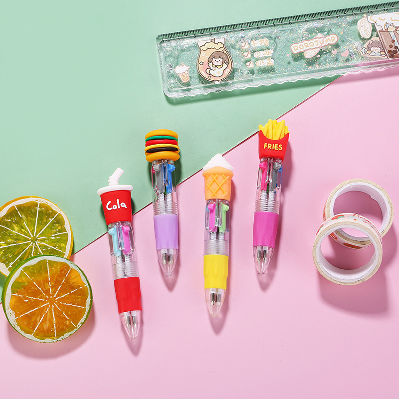 미니 4 색 푸시 볼펜 귀여운 바람 만화 귀여운 헤드 컬러 펜 학생 상품 선물 도매