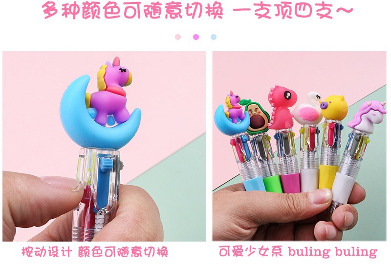 미니 4 색 푸시 볼펜 귀여운 바람 만화 귀여운 헤드 컬러 펜 학생 상품 선물 도매스토어 가기