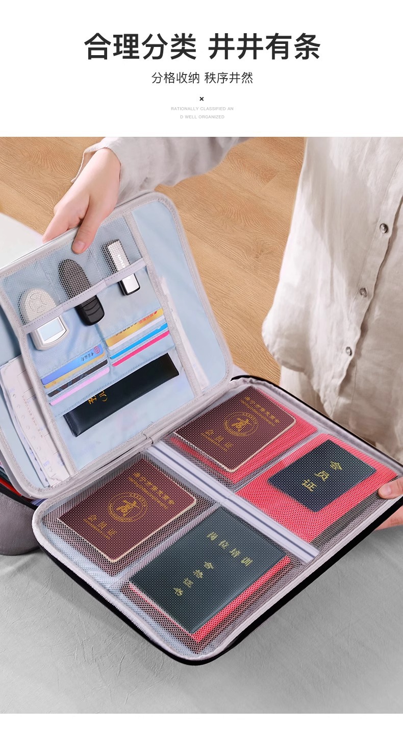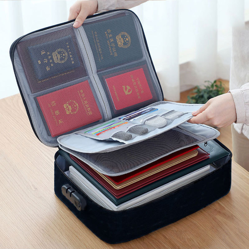 잠금 ID 가방 가족 저장 카드 가방 지퍼 내화가있는 해외 기내 반입 여권 가방 여행 서류 보관 가방스토어 가기