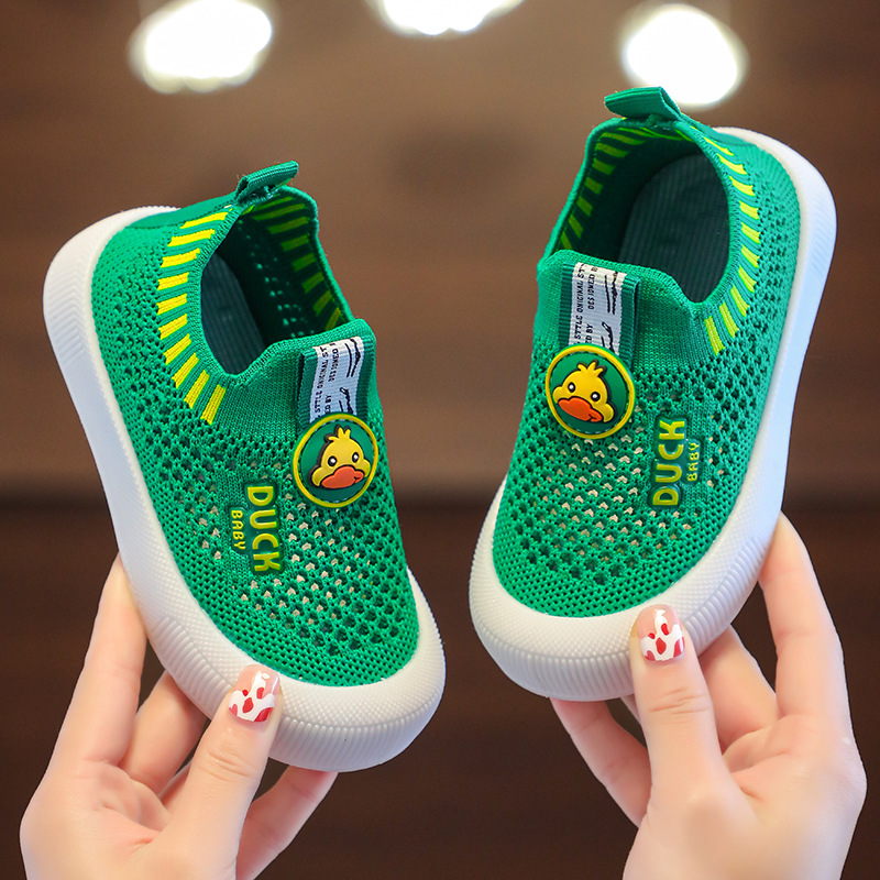 2025 봄과 가을 어린이 통기성 메쉬 신발 미끄럼 방지 플라이 짠 신발 부드러운 바닥 아기 신발 슬립 온 캐주얼 신발스토어 가기