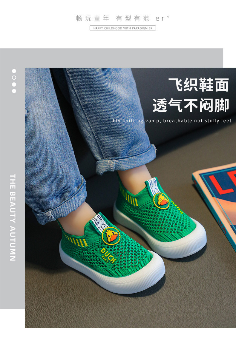 2025 봄과 가을 어린이 통기성 메쉬 신발 미끄럼 방지 플라이 짠 신발 부드러운 바닥 아기 신발 슬립 온 캐주얼 신발