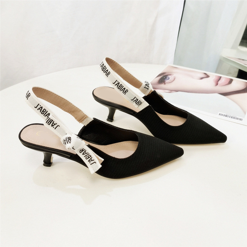 2024년 여름 신상 여성용 다용도 캣힐 레터 샌들, 여성용 포인티드 토 스틸레토 미드힐, 뒷굽이 빈 펌프스 하이힐스토어 가기