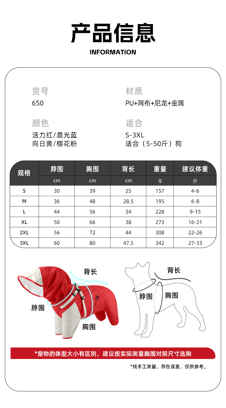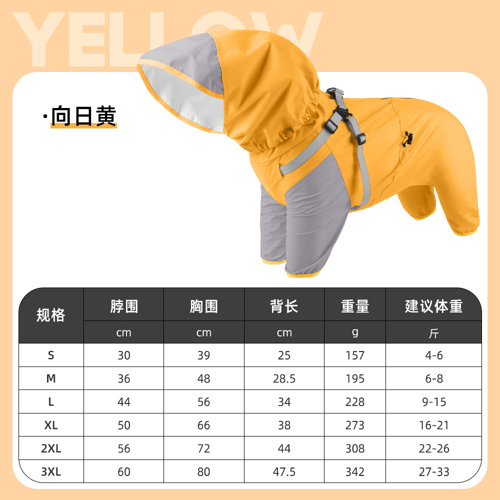 방수 땀 흡수성 후드 견인 개 네 다리 비옷 방수 모든 것을 포함하는 작은 개 애완 동물 비오는 날 옷