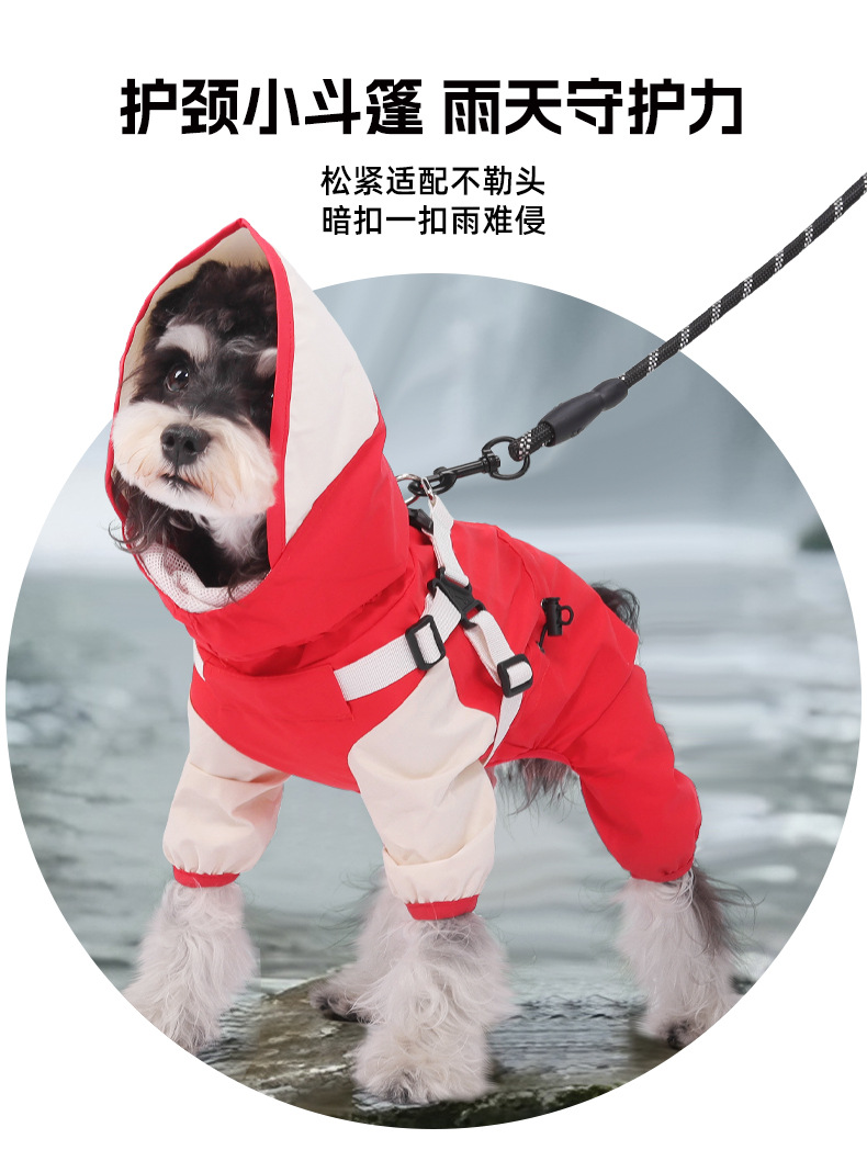 방수 땀 흡수성 후드 견인 개 네 다리 비옷 방수 모든 것을 포함하는 작은 개 애완 동물 비오는 날 옷스토어 가기