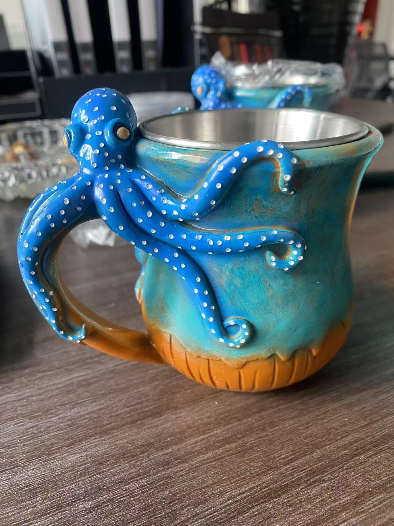 국경 딥 블루 문어 머그잔 아마존 새 집 다크 블루 문어 수지 머그잔