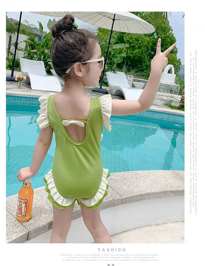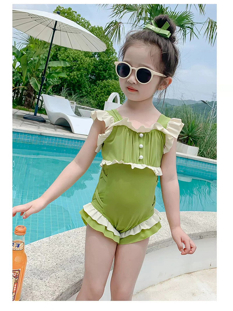 어린이 수영복 소녀 폴리 에스터 원피스 인터넷 연예인 스타일 신선한 어린 소녀 휴가 해변 온천 수영복