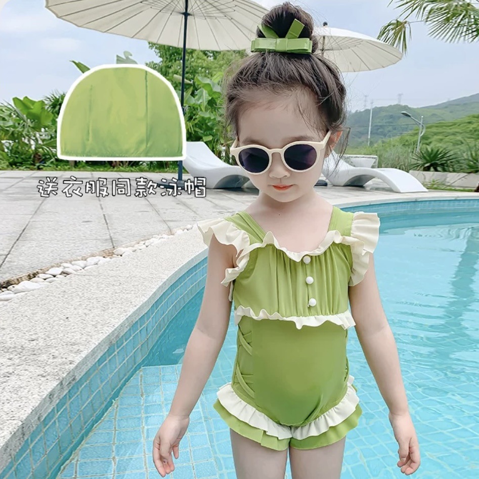 어린이 수영복 소녀 폴리 에스터 원피스 인터넷 연예인 스타일 신선한 어린 소녀 휴가 해변 온천 수영복스토어 가기
