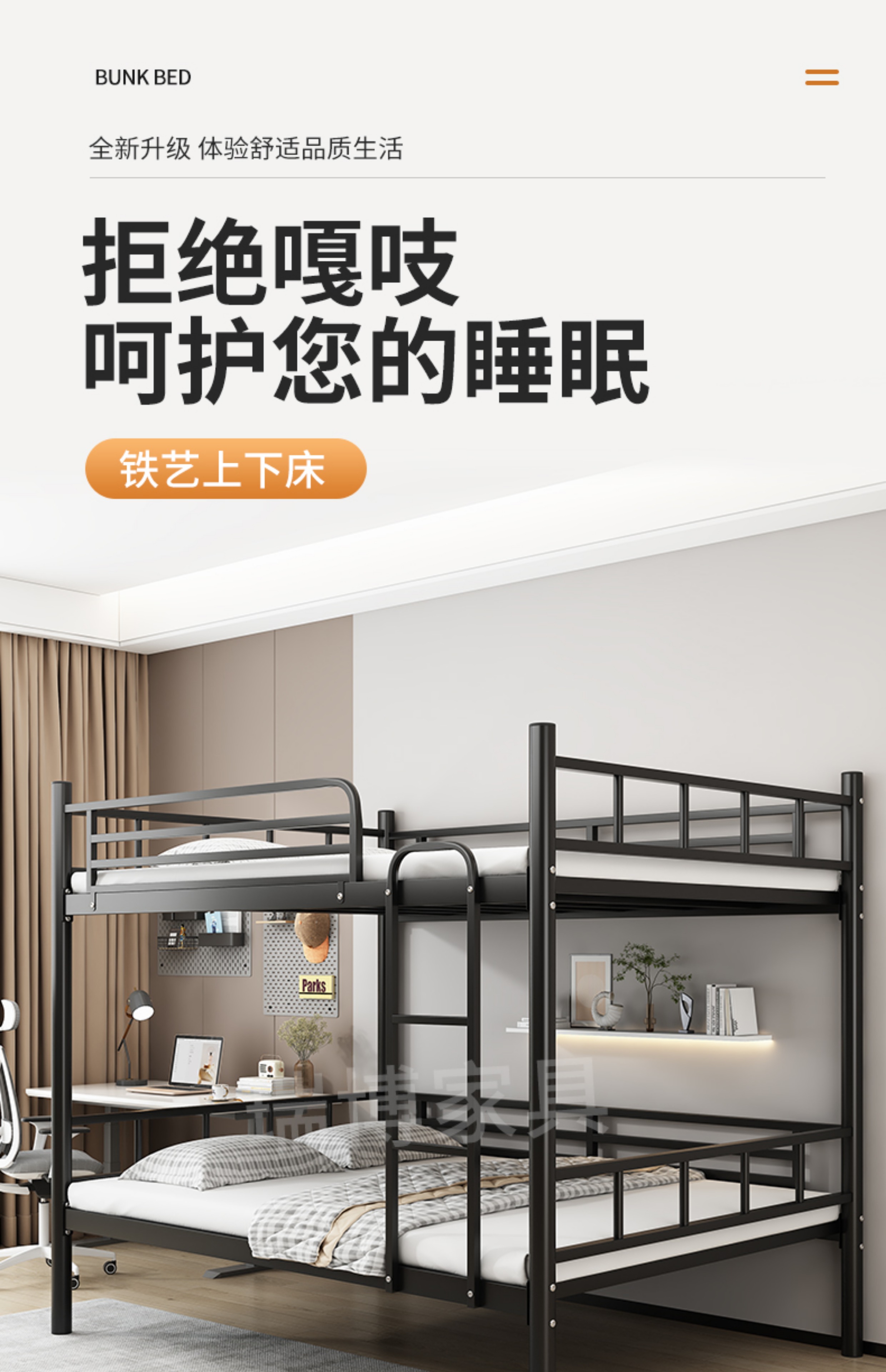 도매 학생 직원 기숙사 상하 침대 아이언 프레임 침대 두꺼운 상하 침대 이층 침대 아이언 프레임 침대 성인 1.5 더블