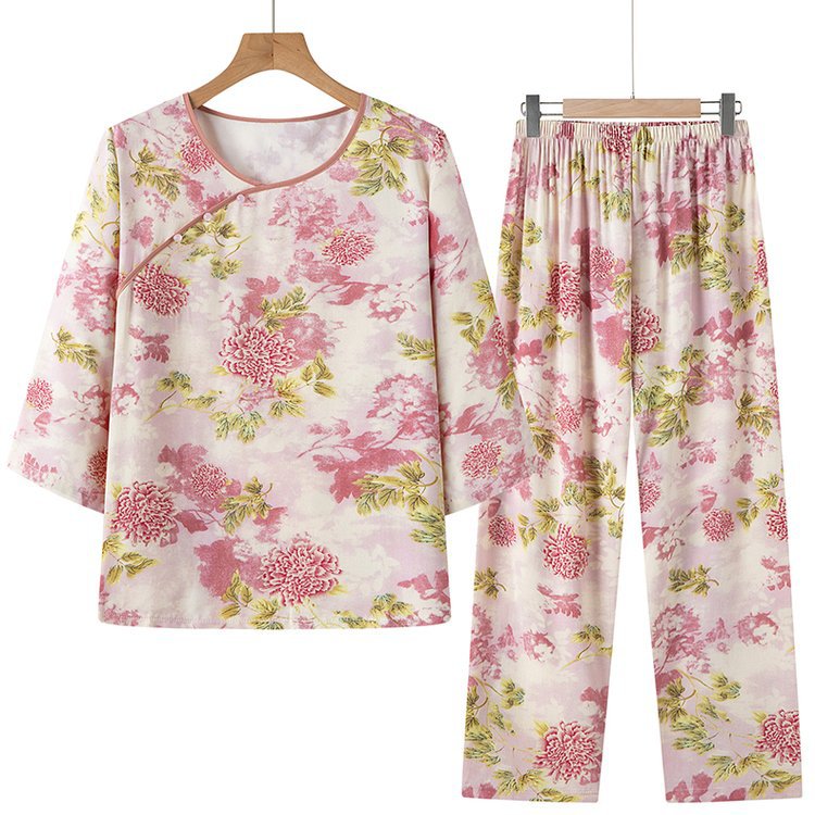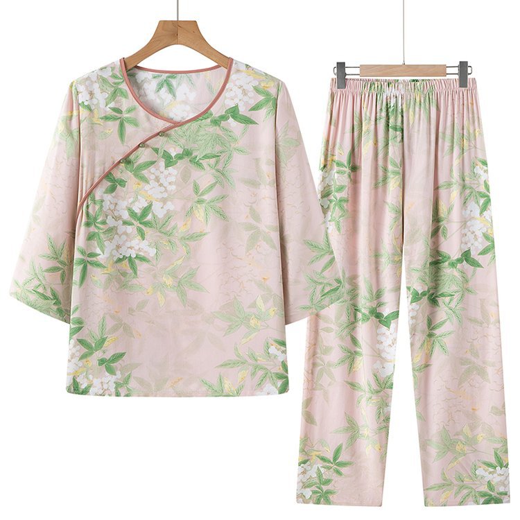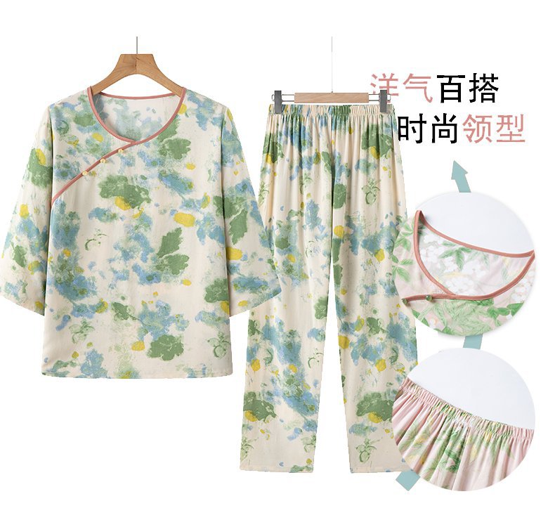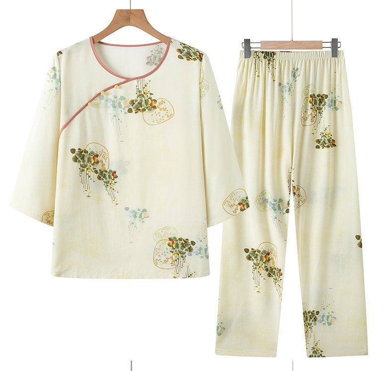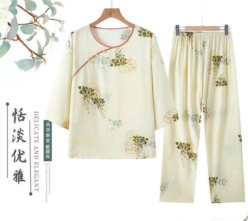 Guoxian Cotton Silk Pajamas 여성의 여름 새로운 도착 슬리브 바지 Lyocell Tencel Outer 홈 의류 세트