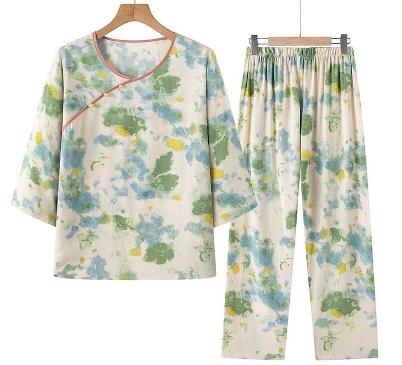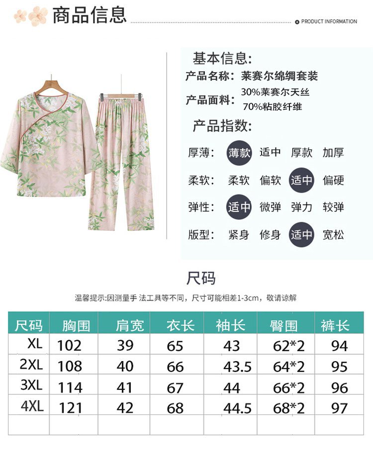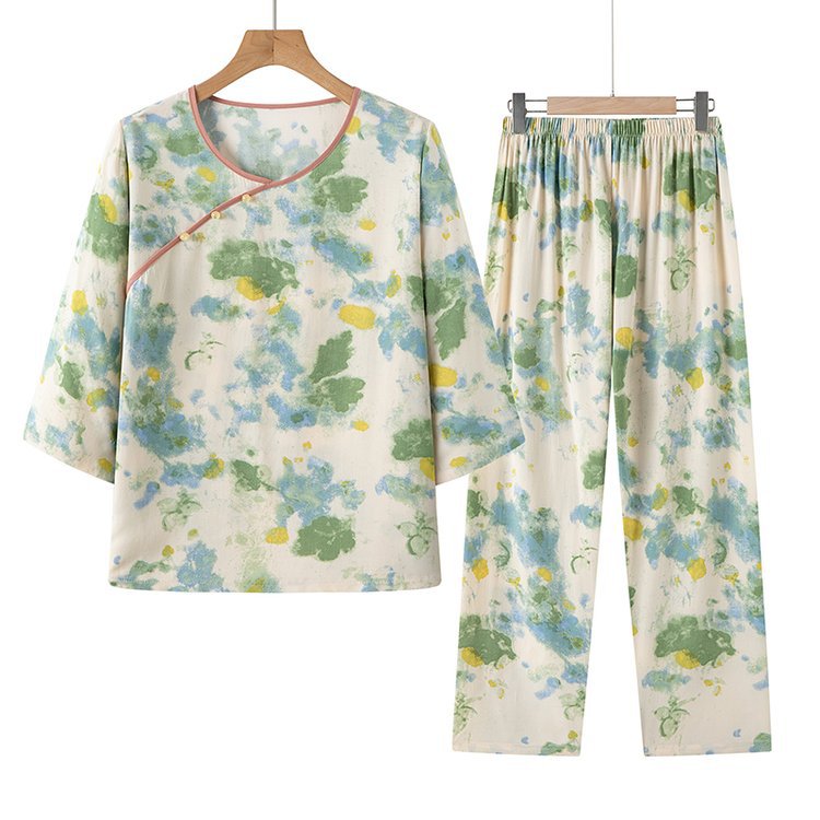 Guoxian Cotton Silk Pajamas 여성의 여름 새로운 도착 슬리브 바지 Lyocell Tencel Outer 홈 의류 세트스토어 가기