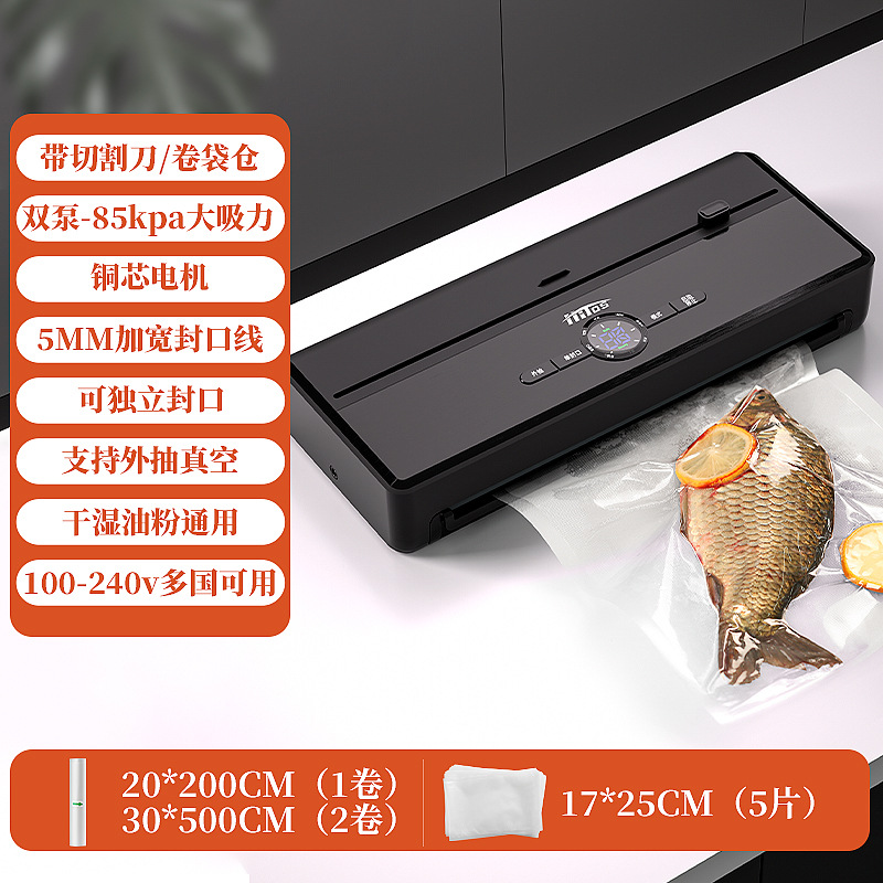 • 검정색 진공 기계 + (1롤 백 + 5피스 백) + 외부 펌핑 튜브