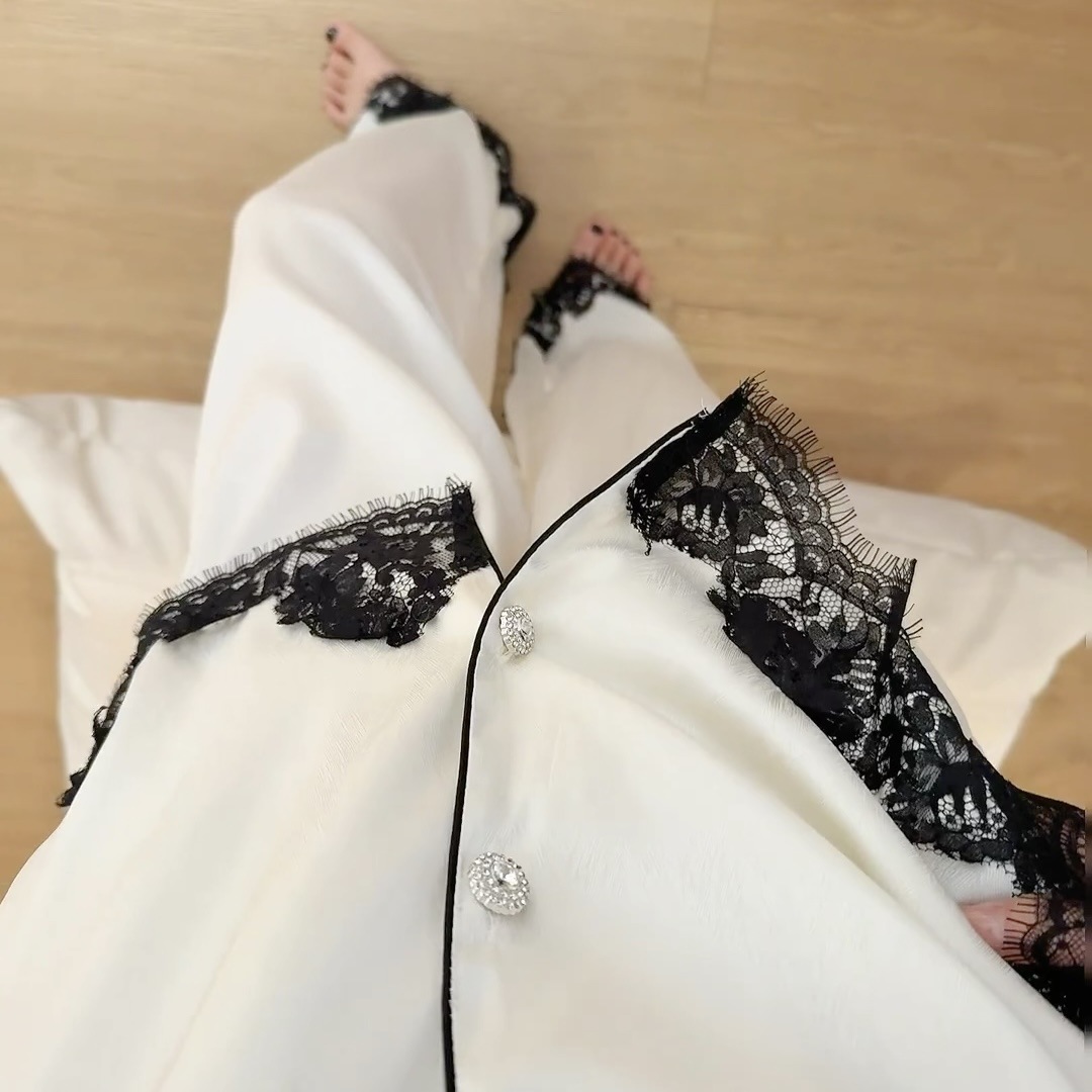프랑스 새 봄 긴 소매 바지 아이스 실크 파자마 여성 달콤하고 고귀한 카디건 겉옷 홈 세트스토어 가기