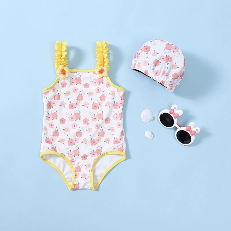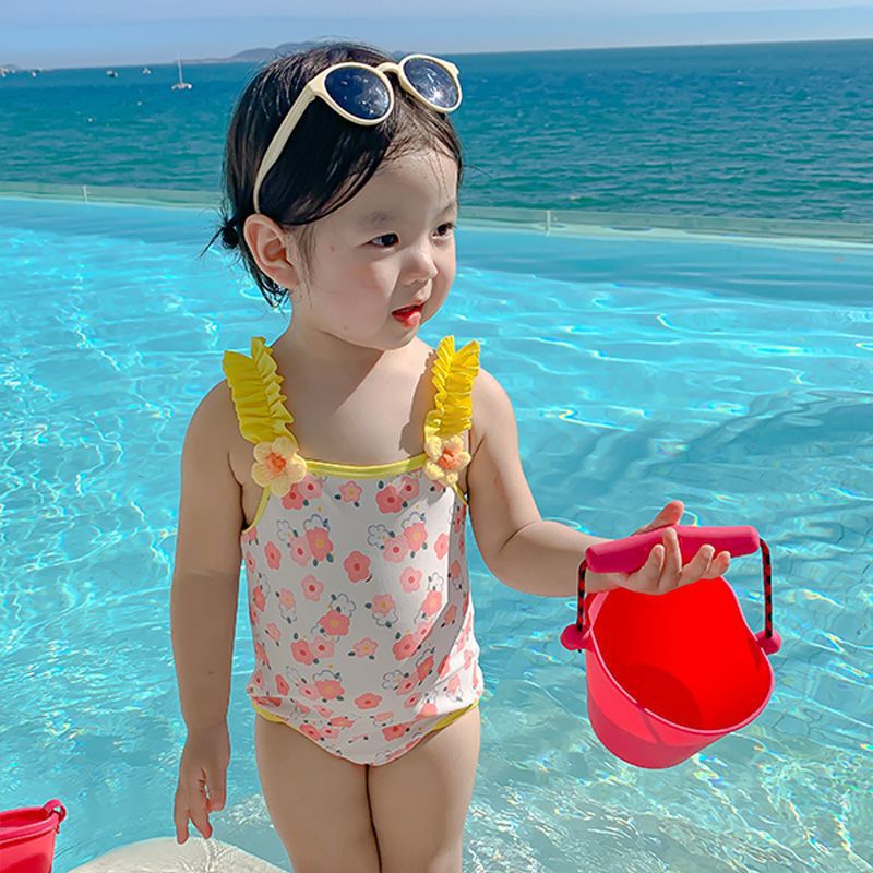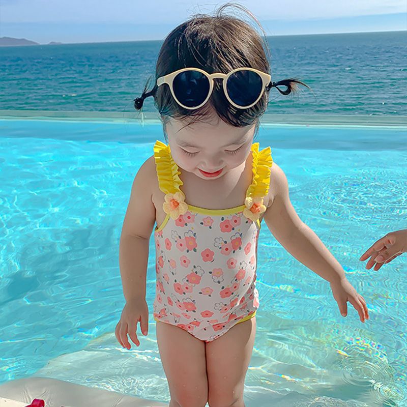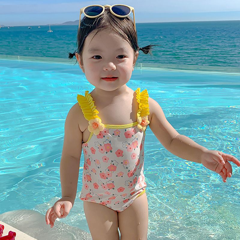 2025 새로운 어린이 수영복 소녀 레이스 아기 소녀 수영복 아기 원피스 꽃 수영복스토어 가기