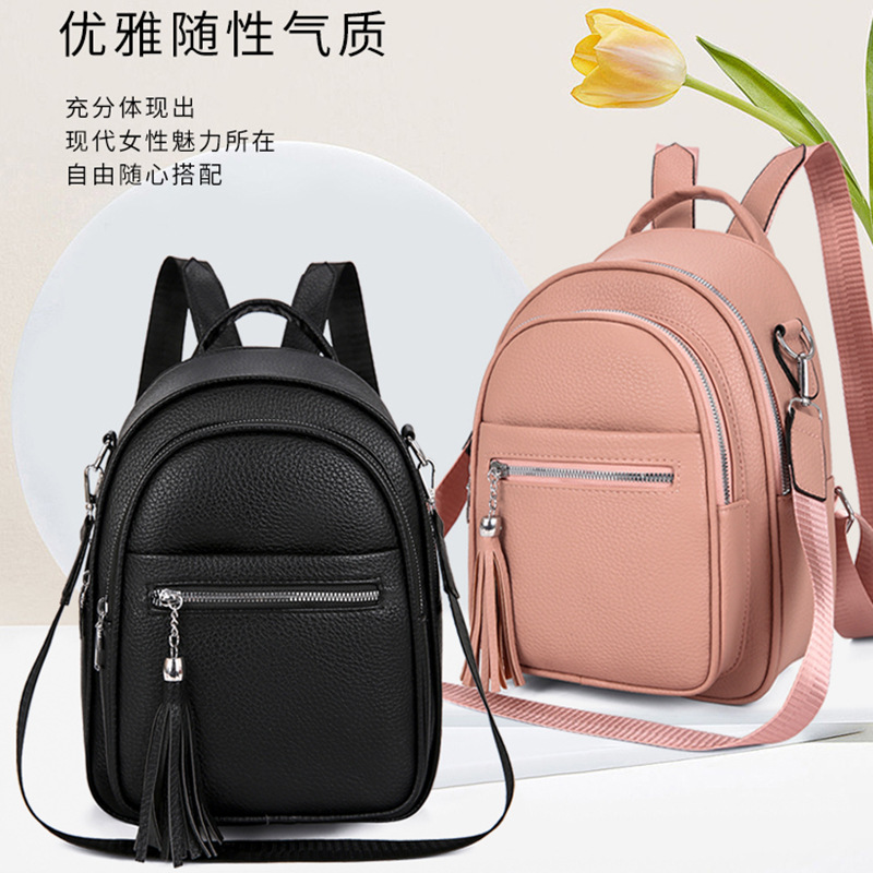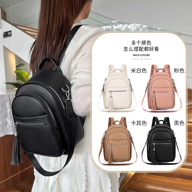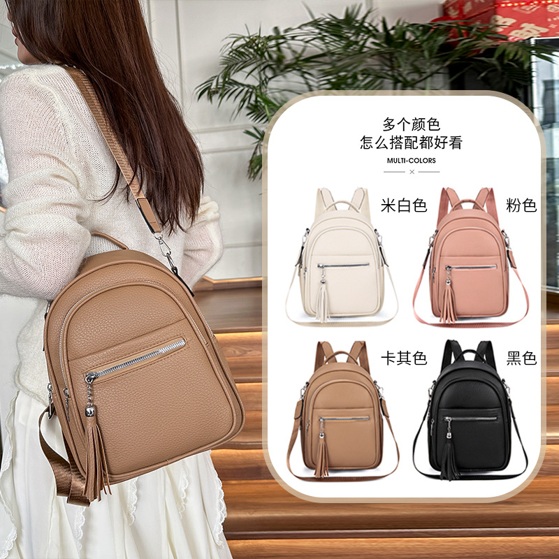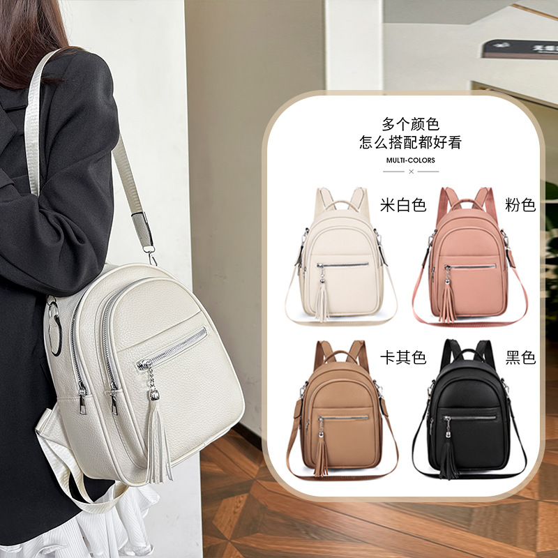 질감 부드러운 가죽 여행 여성 가방 2025 새로운 유행 캐주얼 서양 스타일 올 매치 배낭 멀티 사용 패션 여성 가방스토어 가기