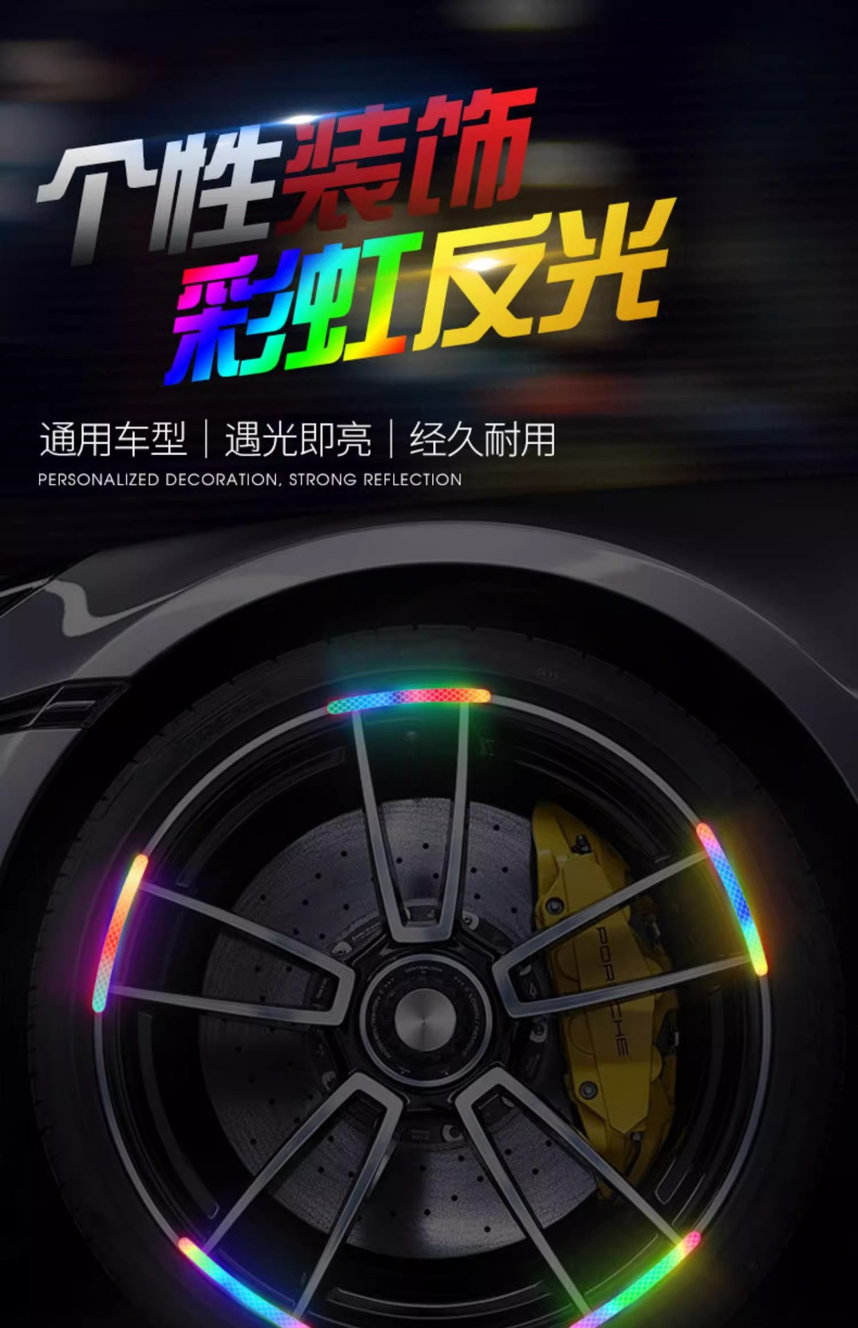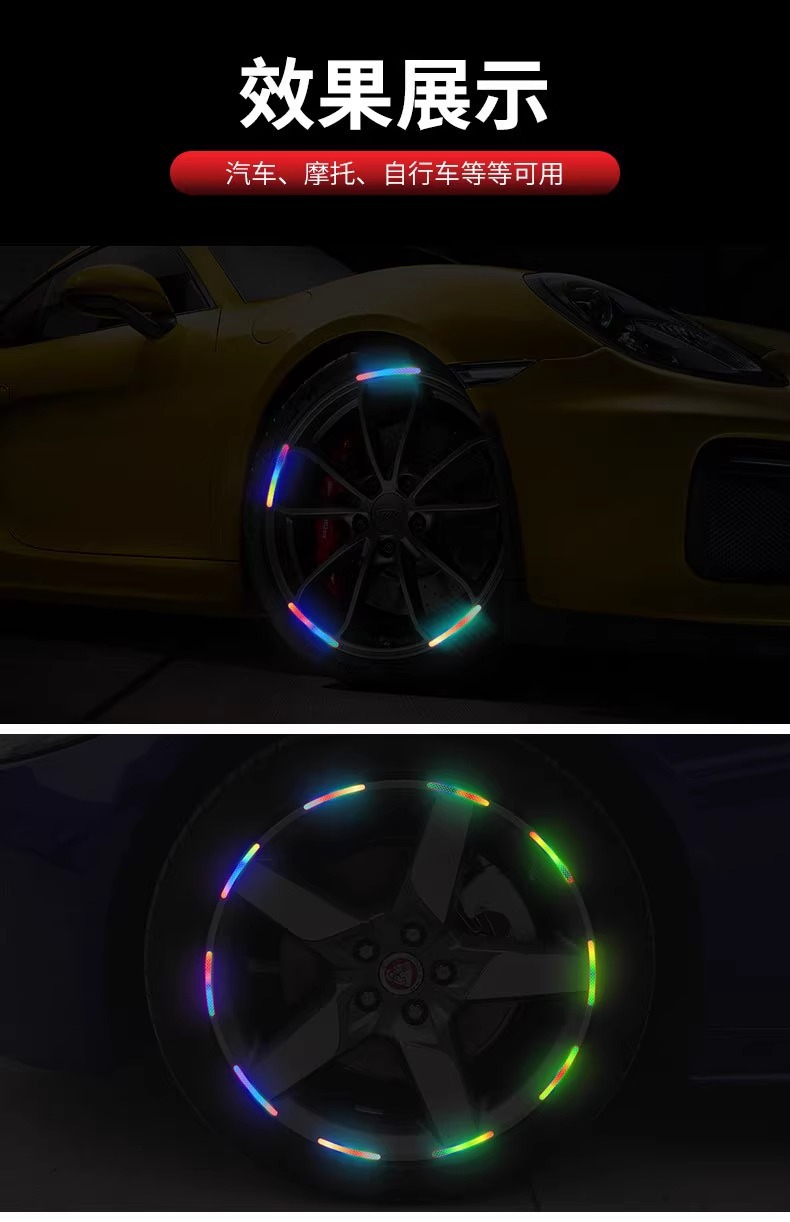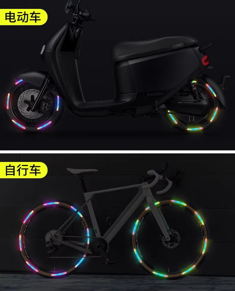 야간 반사 스트립 휠 허브 스티커 반사 스티커 전기 어린이 자전거 균형 자동차 자체 접착 경고 스티커 휠 장식