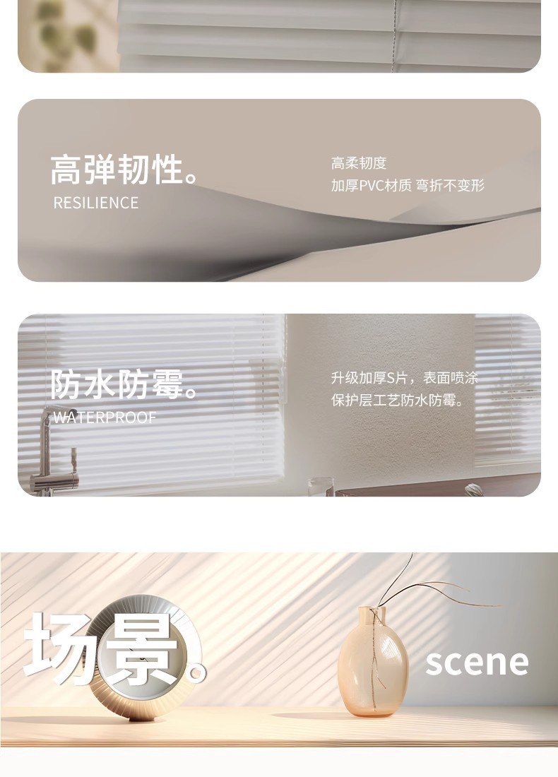 블라인드 현대 커튼 S 자형 PVC 블라인드 욕실 욕실 새로운 방수 차광 주방 방수 및 방수