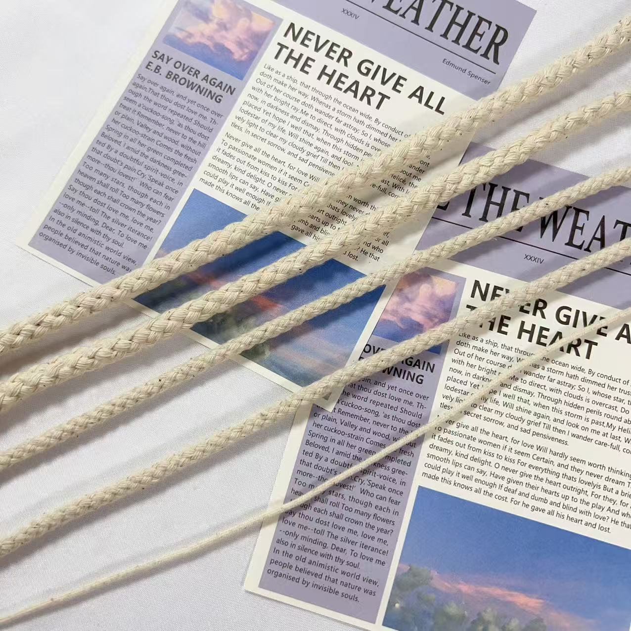 공장 2-10mm 자연 색상 8 가닥면 로프 중공 꼰 로프 수동 DIY 넥타이 로프 두꺼운 로프 휴대용 가방 로프