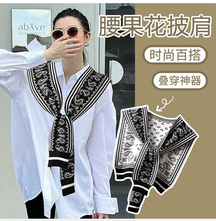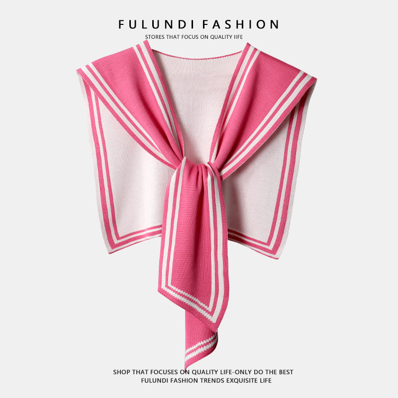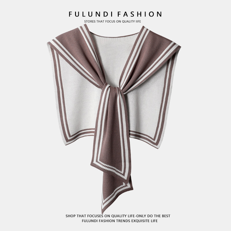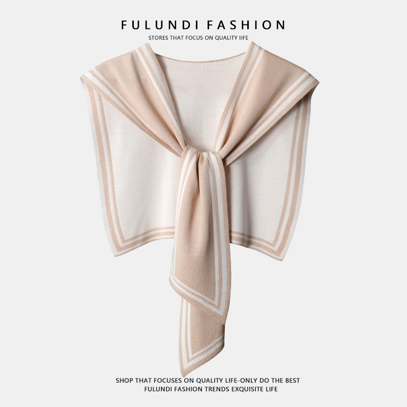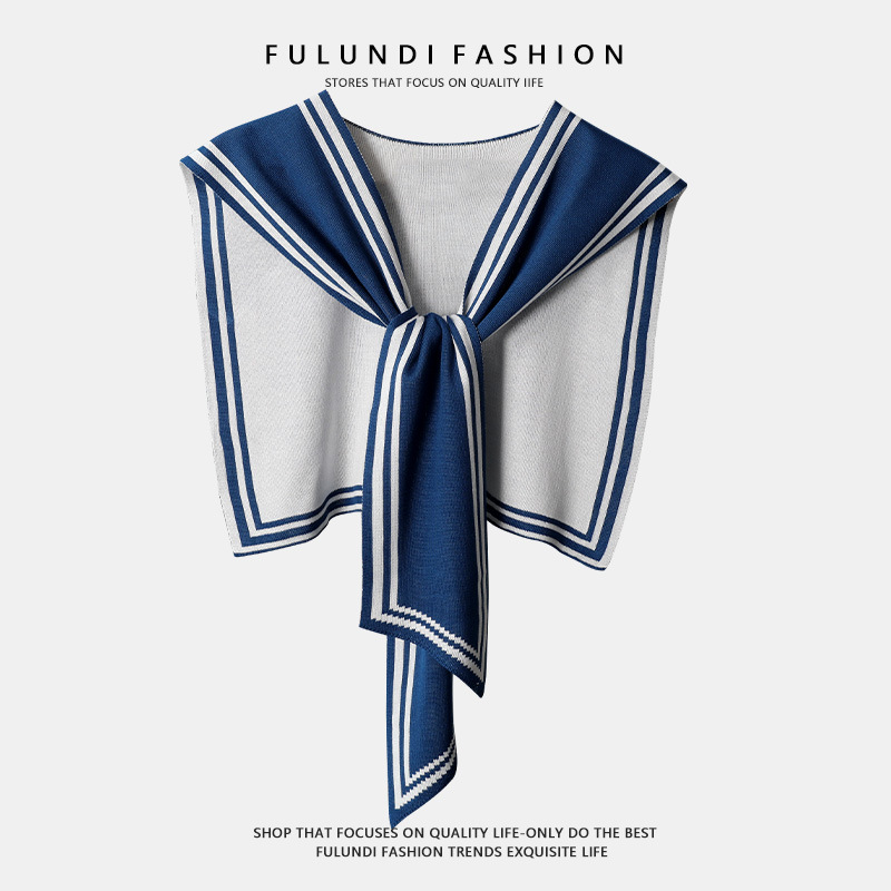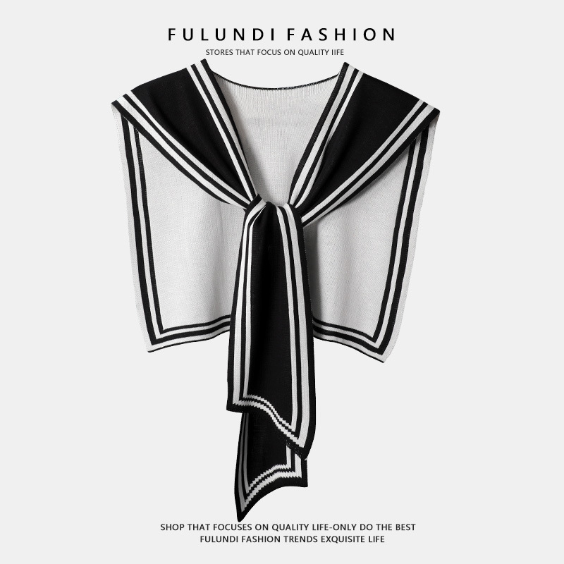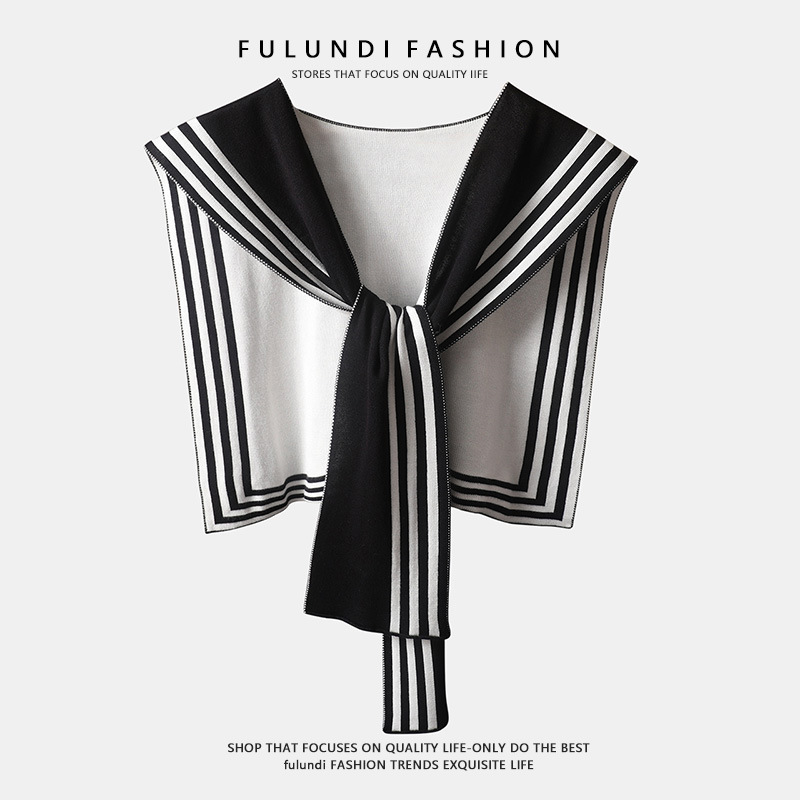 韩版海军风网红披肩女黑白条纹外搭衬衫春秋针织假领子空调房搭肩