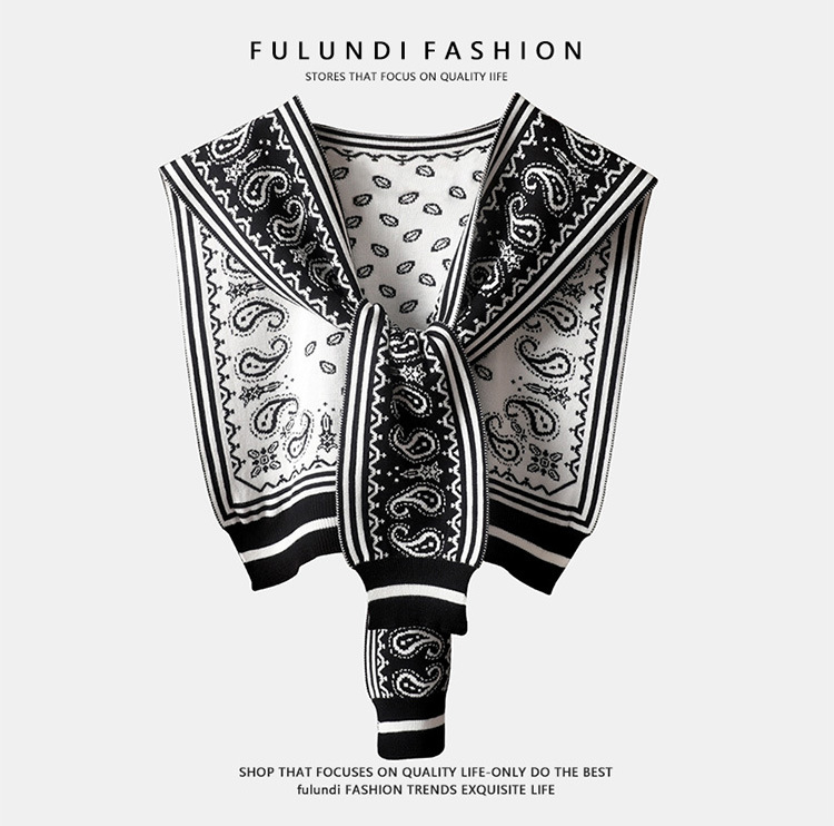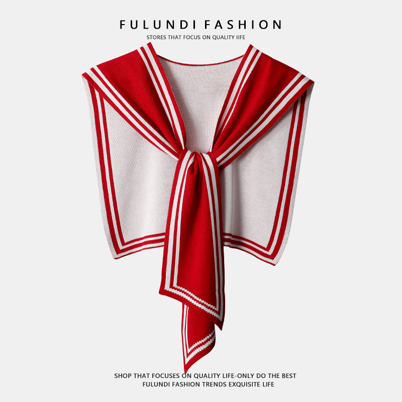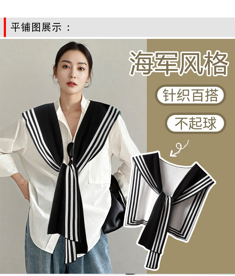 한국 스타일 네이비 스타일 인터넷 기념 목도리 여성 흑백 줄무늬 외부 셔츠 봄과 가을 니트 거짓 칼라 에어컨이 설치된 방 어깨