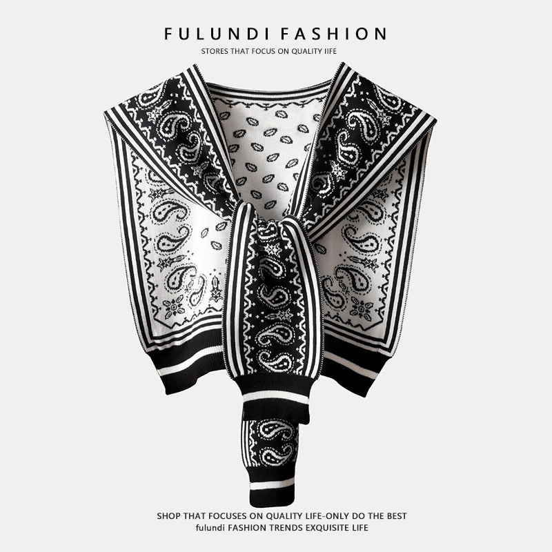 한국 스타일 네이비 스타일 인터넷 기념 목도리 여성 흑백 줄무늬 외부 셔츠 봄과 가을 니트 거짓 칼라 에어컨이 설치된 방 어깨스토어 가기
