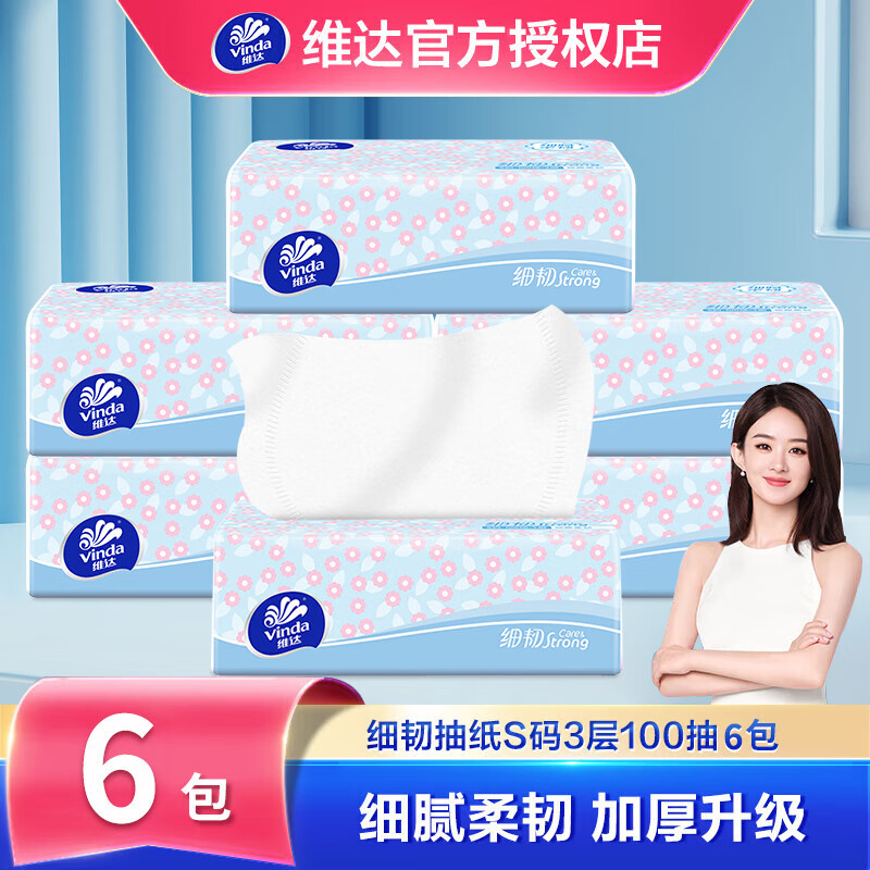 [24팩] Vinda Xinyun 100매 냅킨 3팩, 화장지, 탈부착 가능한 종이 타월, 가정 및 학생용 저렴한 종이 타월스토어 가기