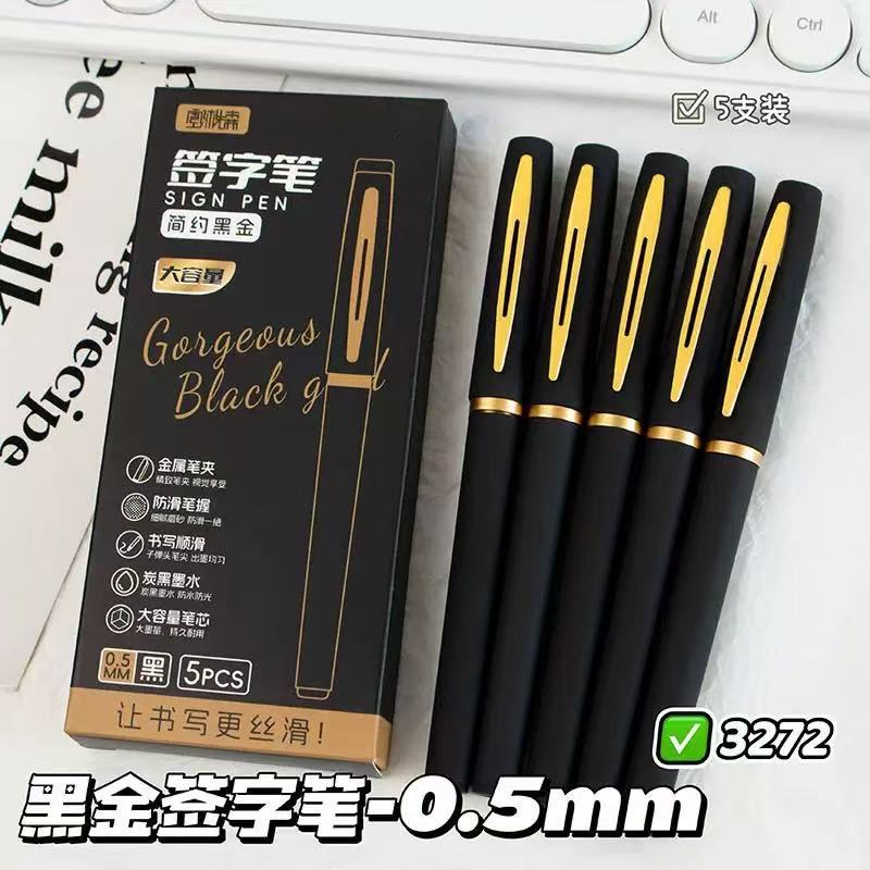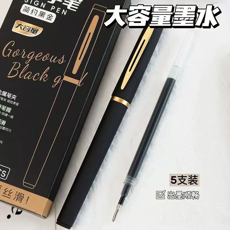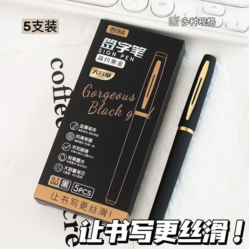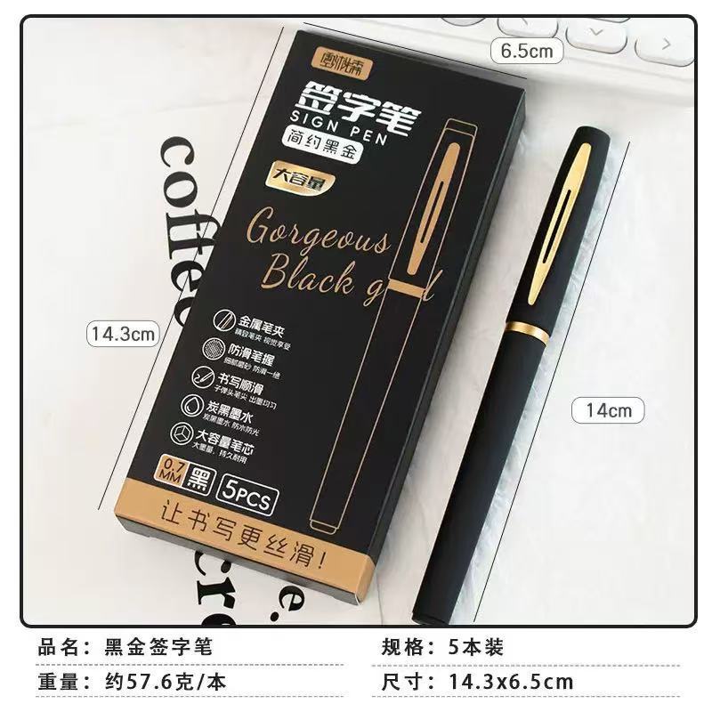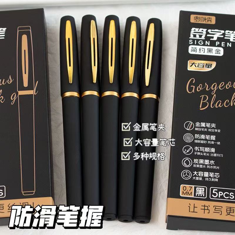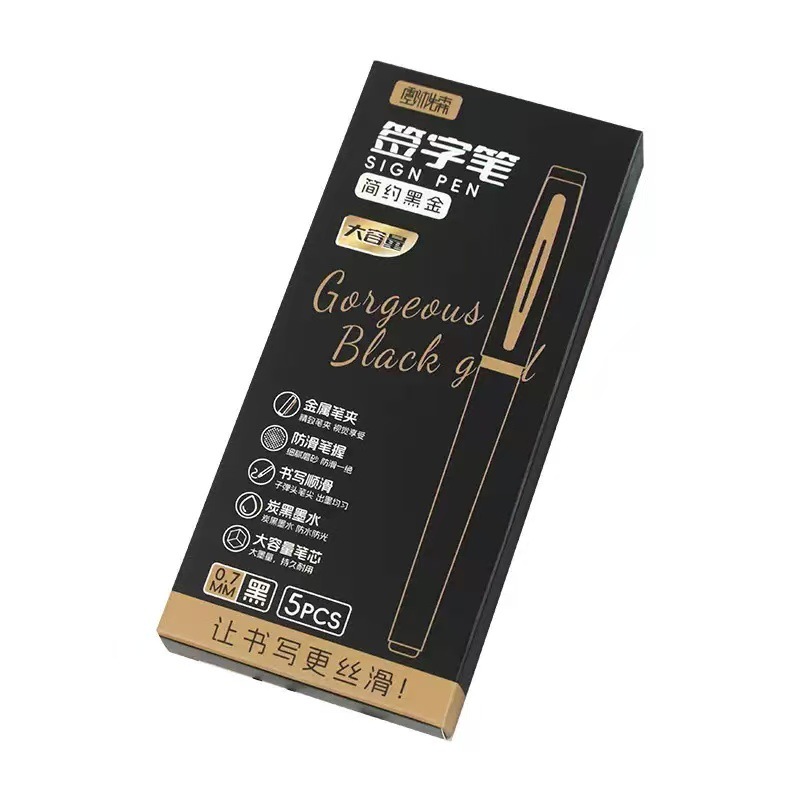 간단한 블랙 골드 사인 펜 0.5mm 대용량 젤 펜 블랙 박스 0.7/1.0 사무실 회의 사인 펜