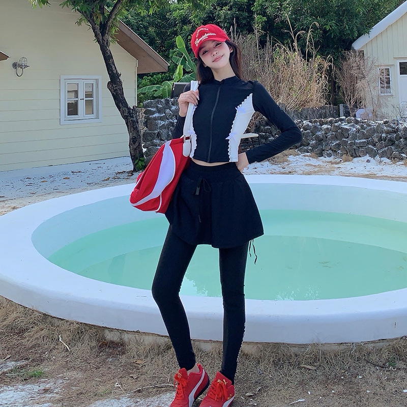 2025년 신상 여성 수영복 4피스 세트, 보수적인 배 커버, 슬리밍, 섹시한 한국 인스 스타일 온천 수영복스토어 가기